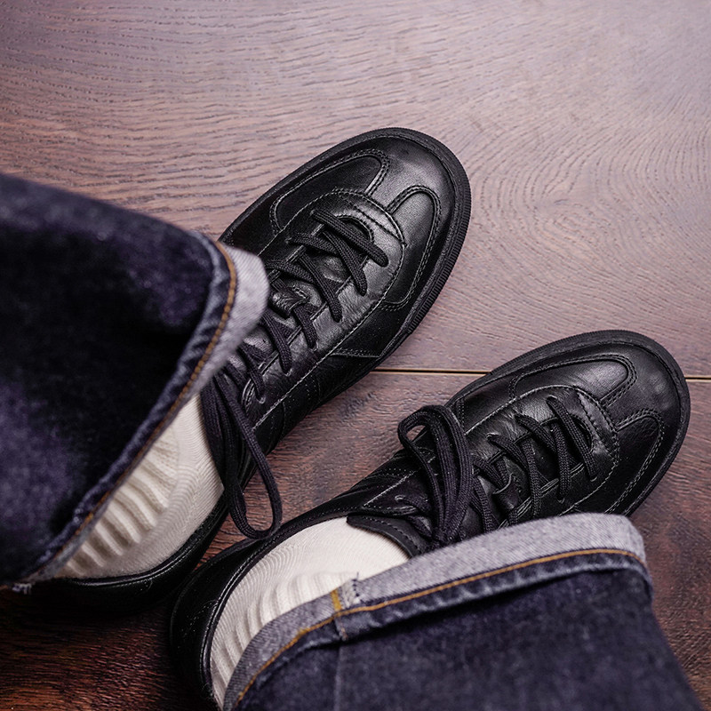 📚 枯骨里外全牛皮低帮极简风板鞋真皮柔软休闲小白鞋黑武士德训鞋