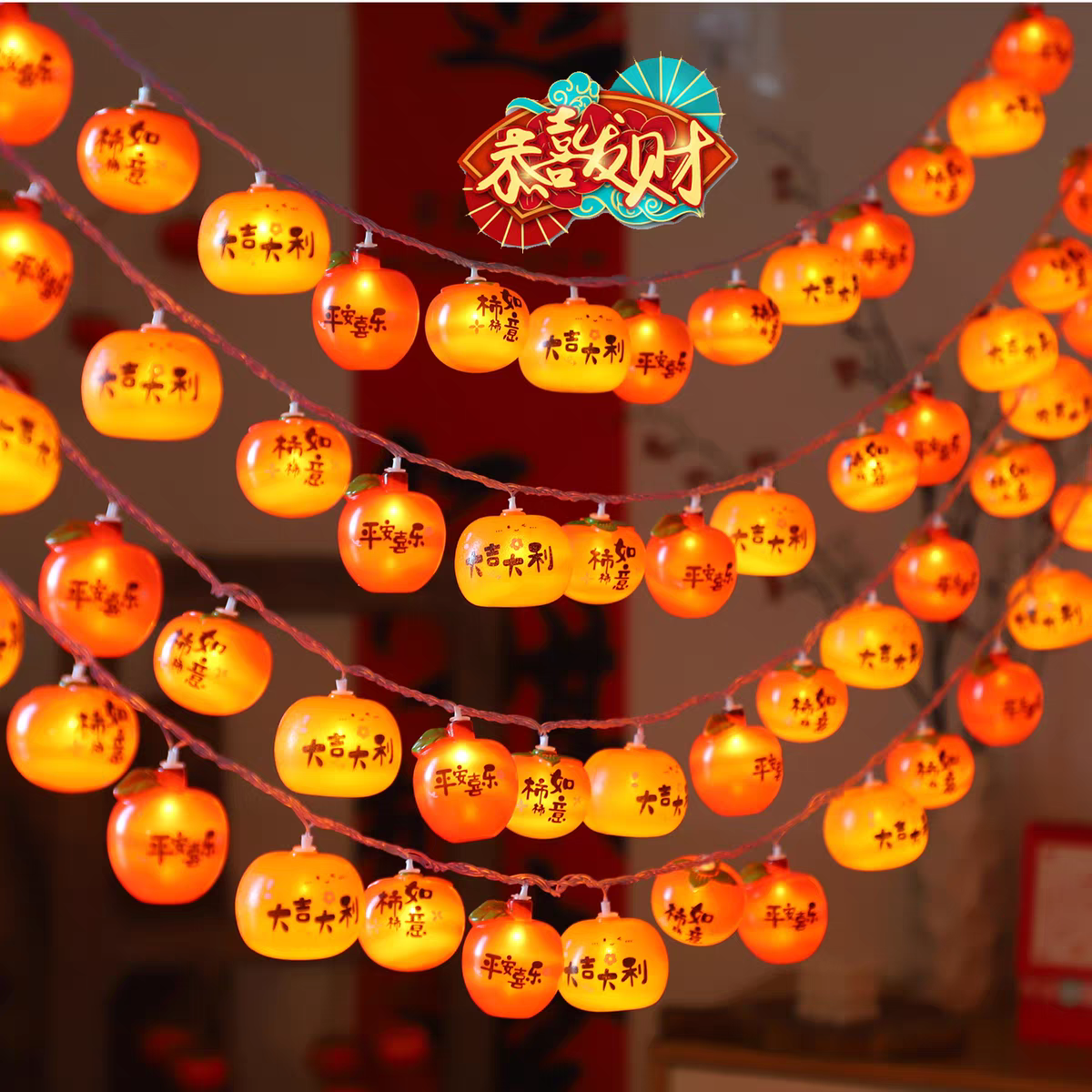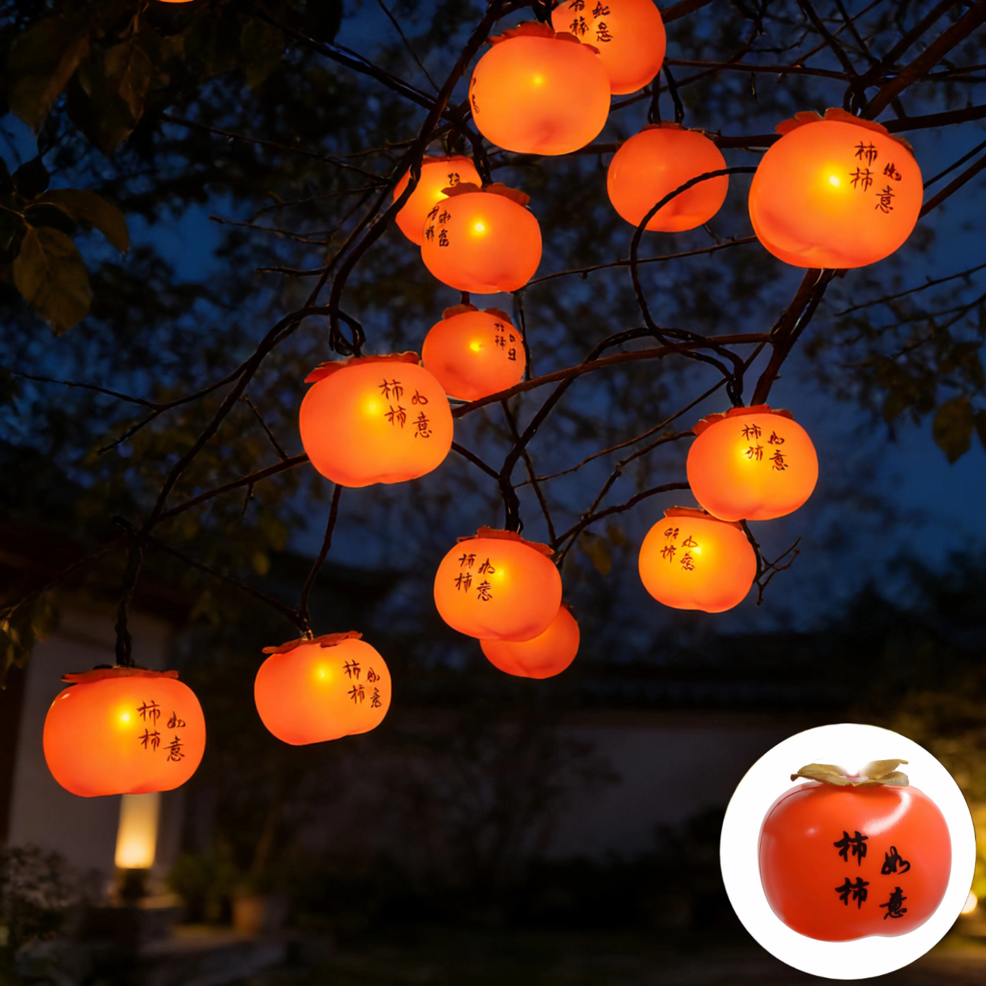 📚 户外太阳能柿子灯串彩灯2026新款氛围灯笼过新年庭院挂树上装饰灯