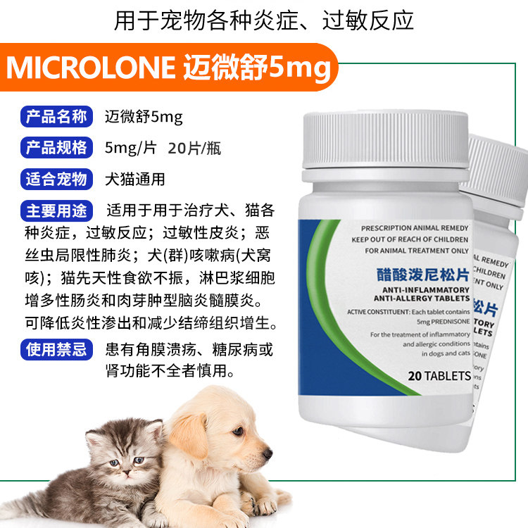 📚 泼尼松龙片5mg迈可舒猫口炎狗抗过敏性皮炎咳嗽肺炎关节炎迈微舒