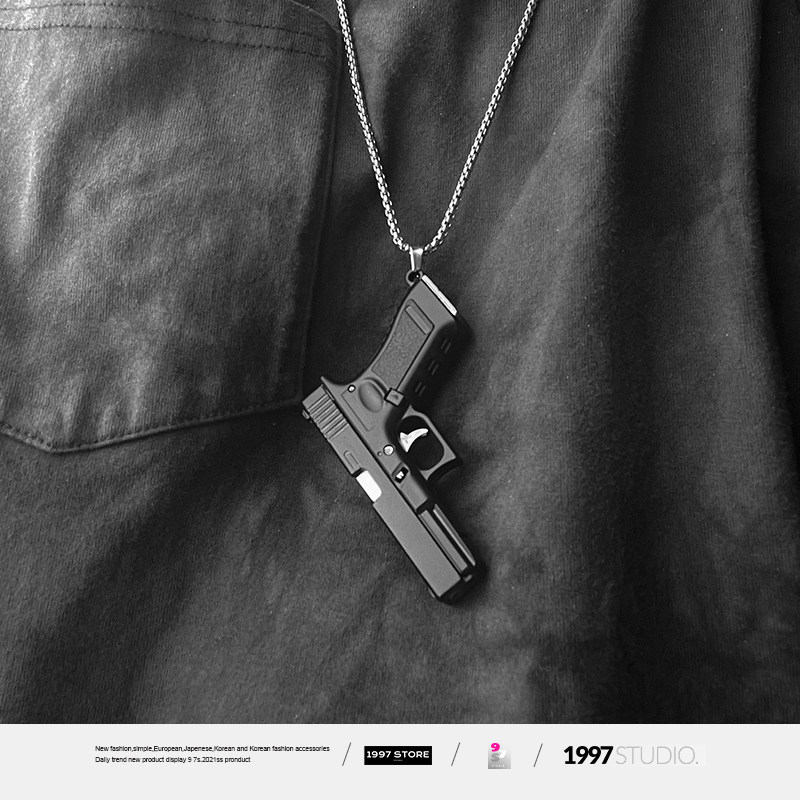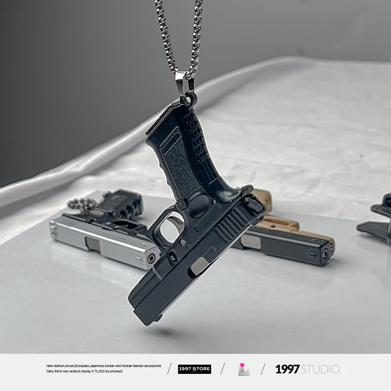📚 迷你格洛克手枪项链钛钢glock g17钥匙扣CSGO周边模型1:3解压挂件