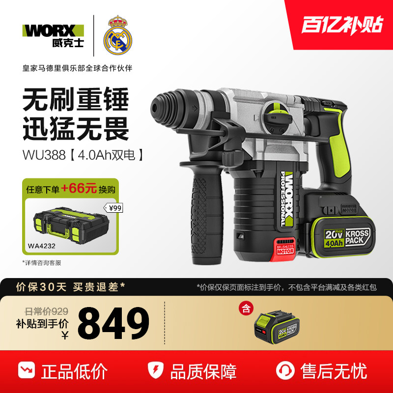 📚 威克士锂电电锤WU388无刷充电冲击钻两用电镐大功率打混凝土工具