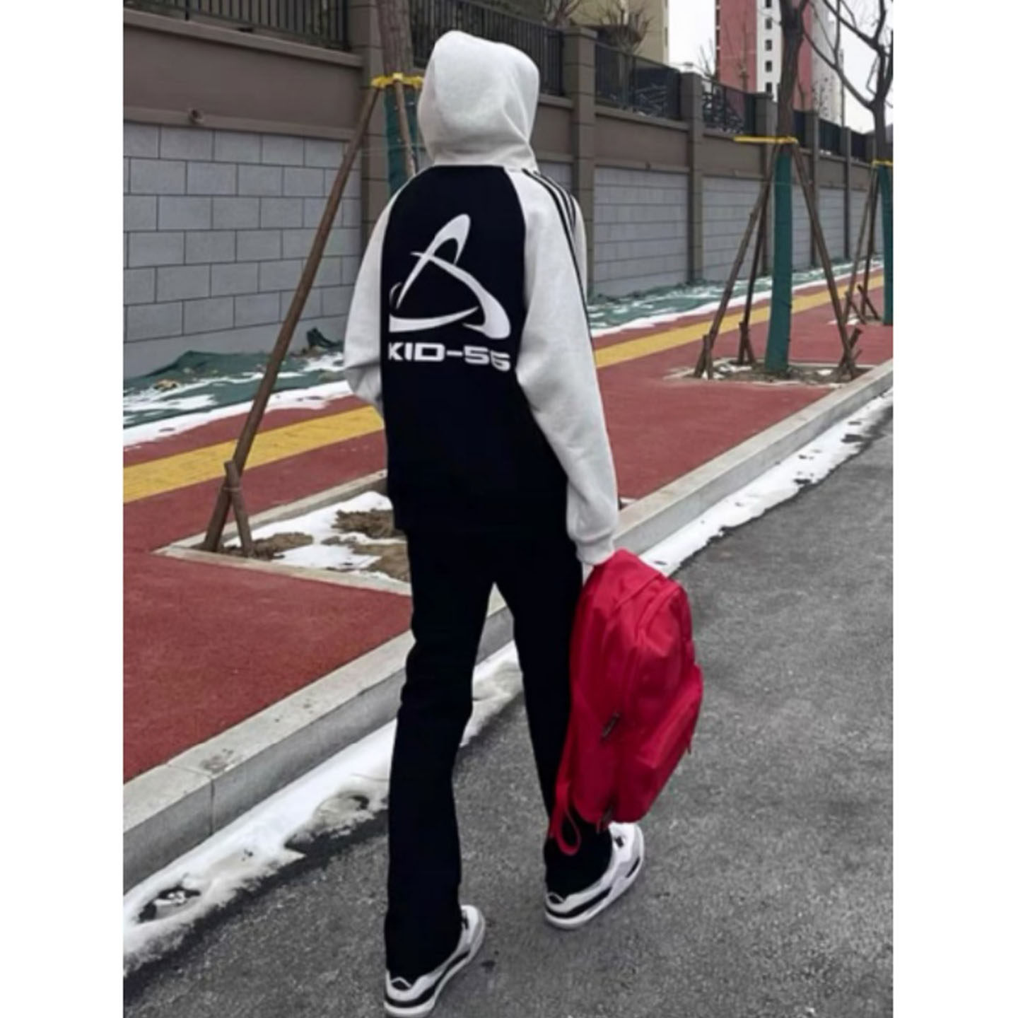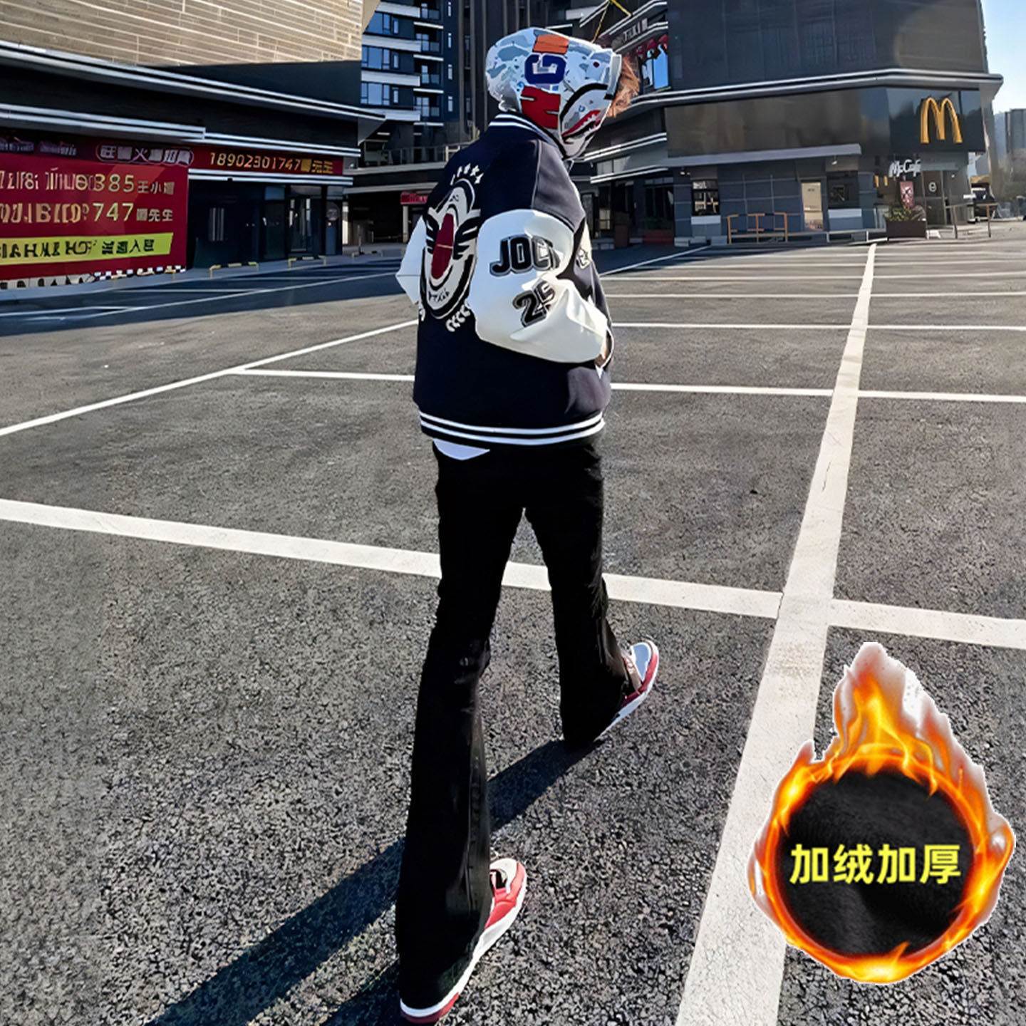 📚 美式高街vibe黑色柳叶弯刀加绒牛仔裤秋冬季直筒修身微喇长裤男生