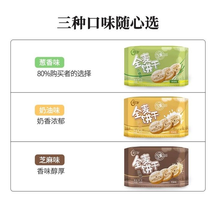 📚 阿尔发木糖醇全麦饼干五谷杂粮粗粮酥性饼干芝麻葱香奶油早餐零食