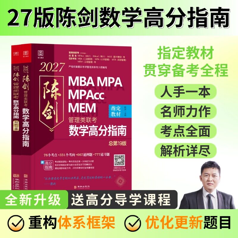 📚 新华正版】2027陈剑管综数学高分指南管理类联考教材199MBA MPA MPAcc MEM 管综数学教材 陈剑编著199管理类联考综合能力赵鑫全