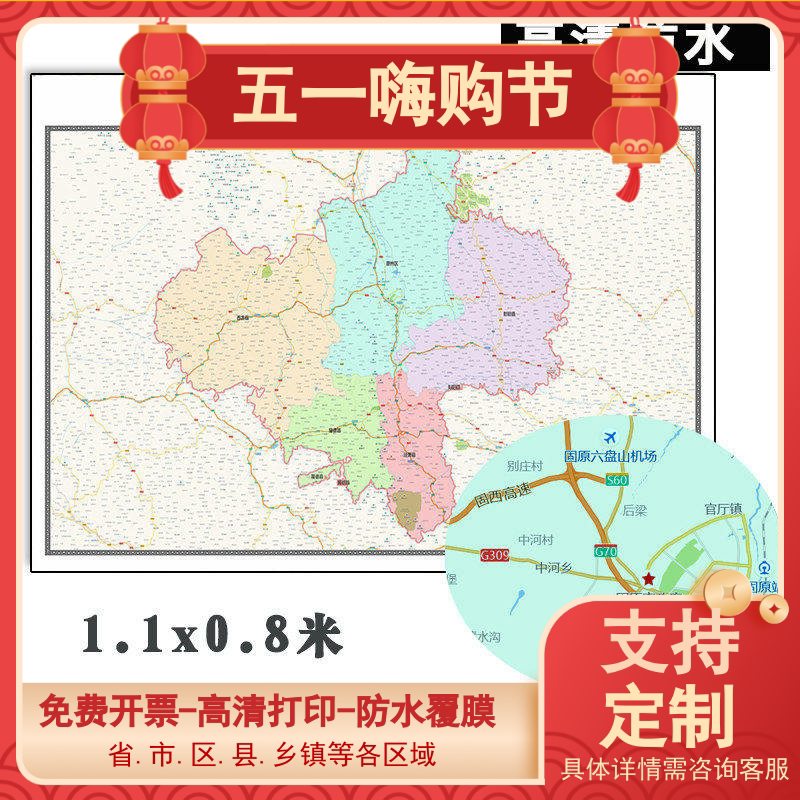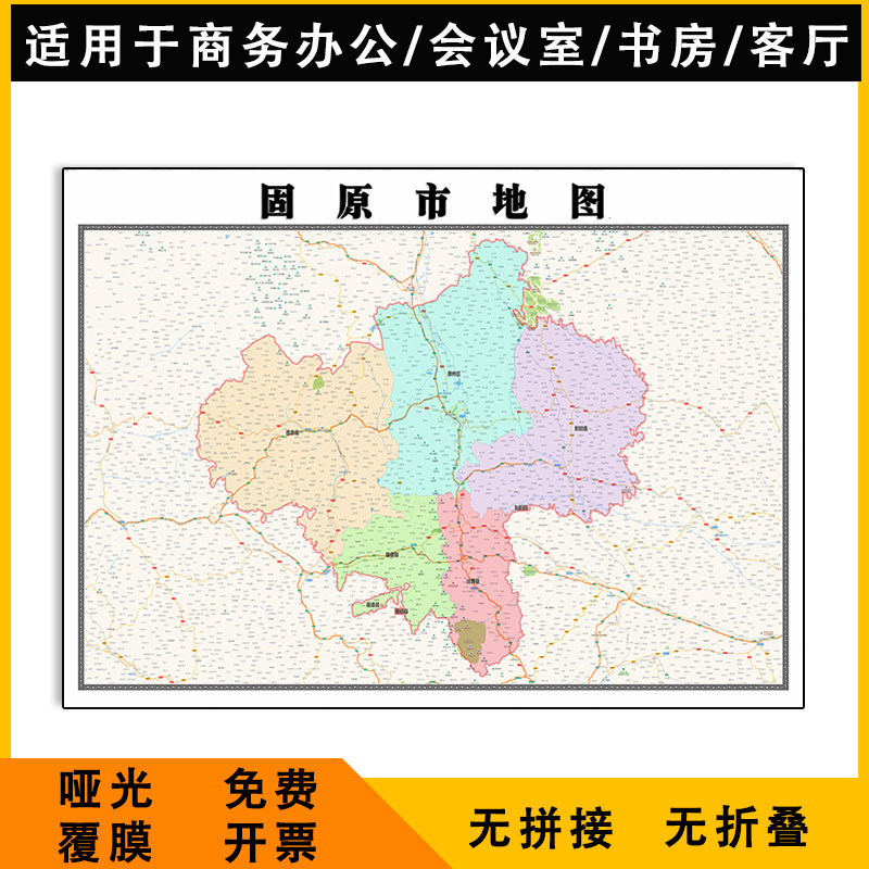 📚 固原市地图1.1米全图可订制新款宁夏回族行政交通分布图办公贴图