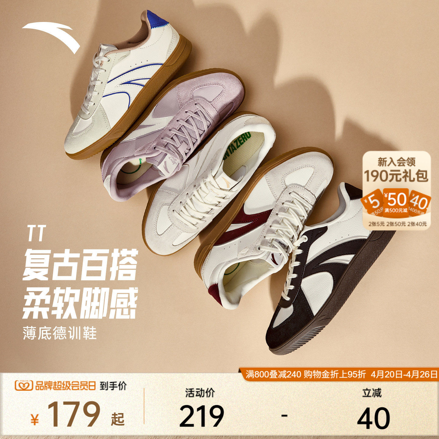📚 安踏TT鞋丨足球风德训鞋经典薄底男女T头鞋情侣款百搭休闲运动鞋