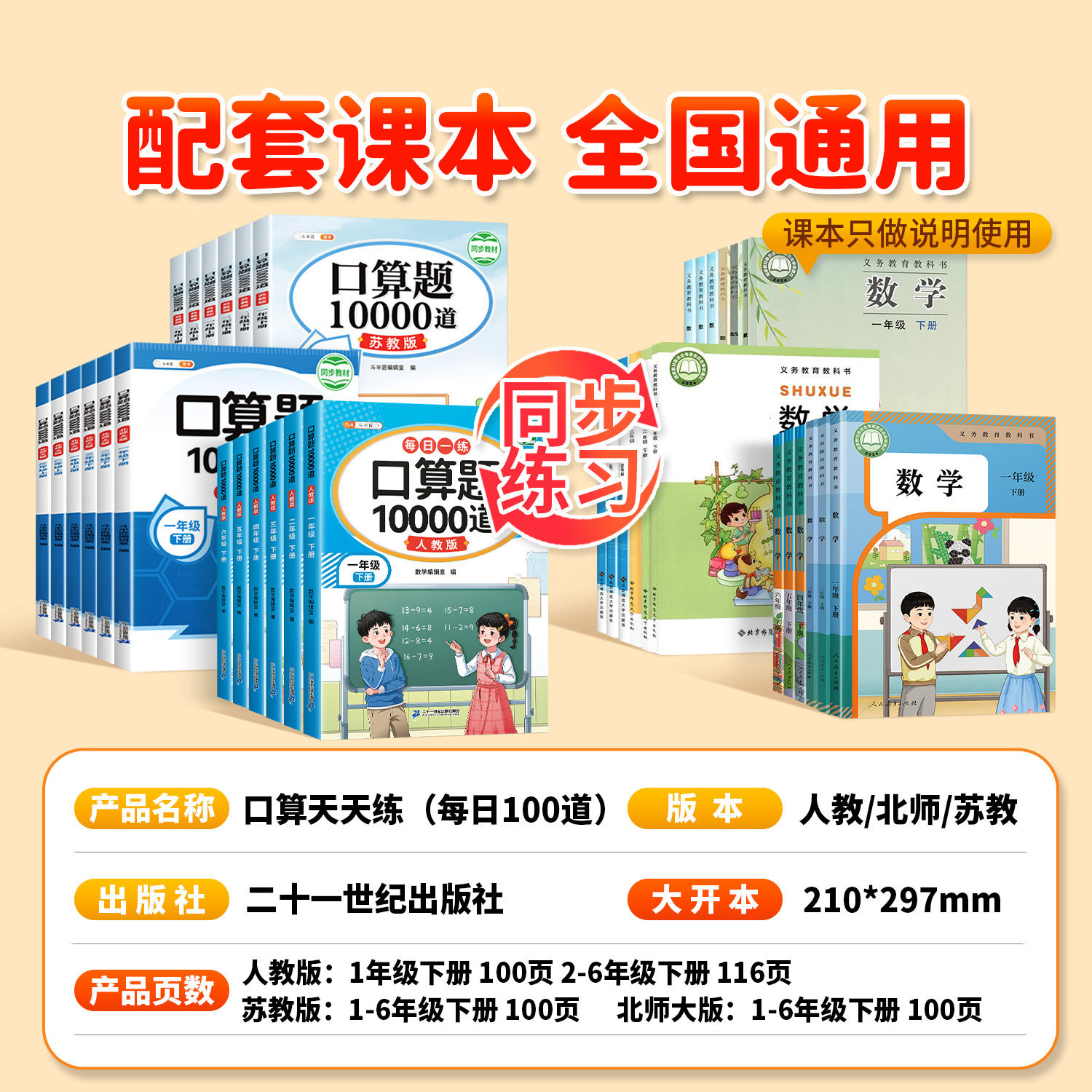📚 2026新版口算天天练一年级二年级下册上册小学数学口算题卡10000道每天一练三四五六年级下人教版北师苏教乘法练习册斗半匠口算题