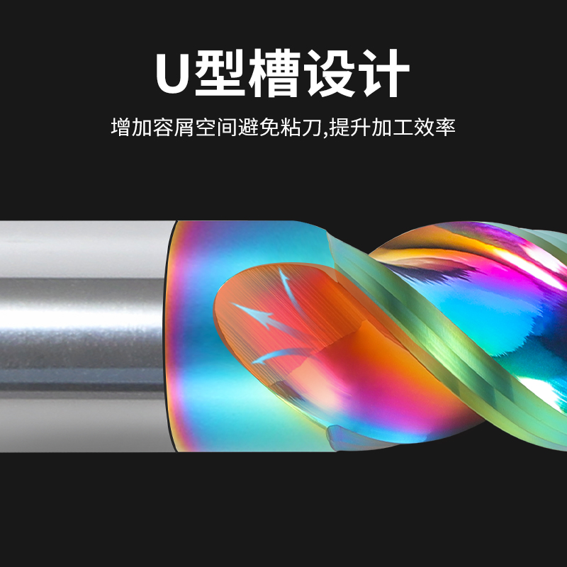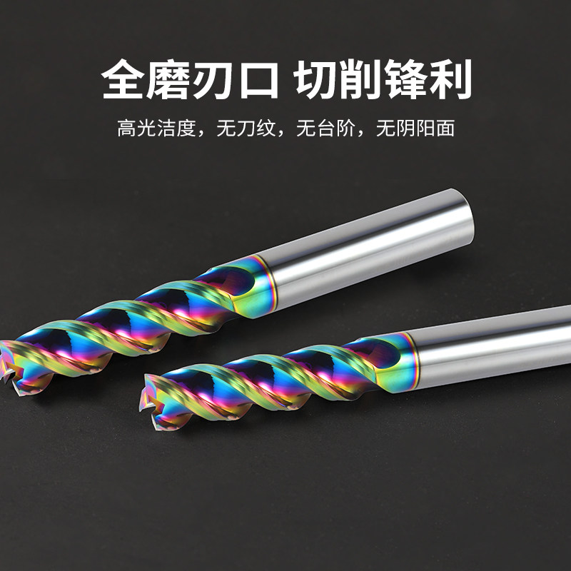 📚 65度U型槽七彩高光铝用三刃钨钢铣刀高效硬质合金加长数控cnc刀具
