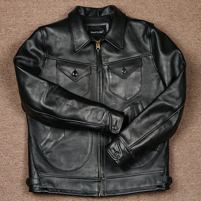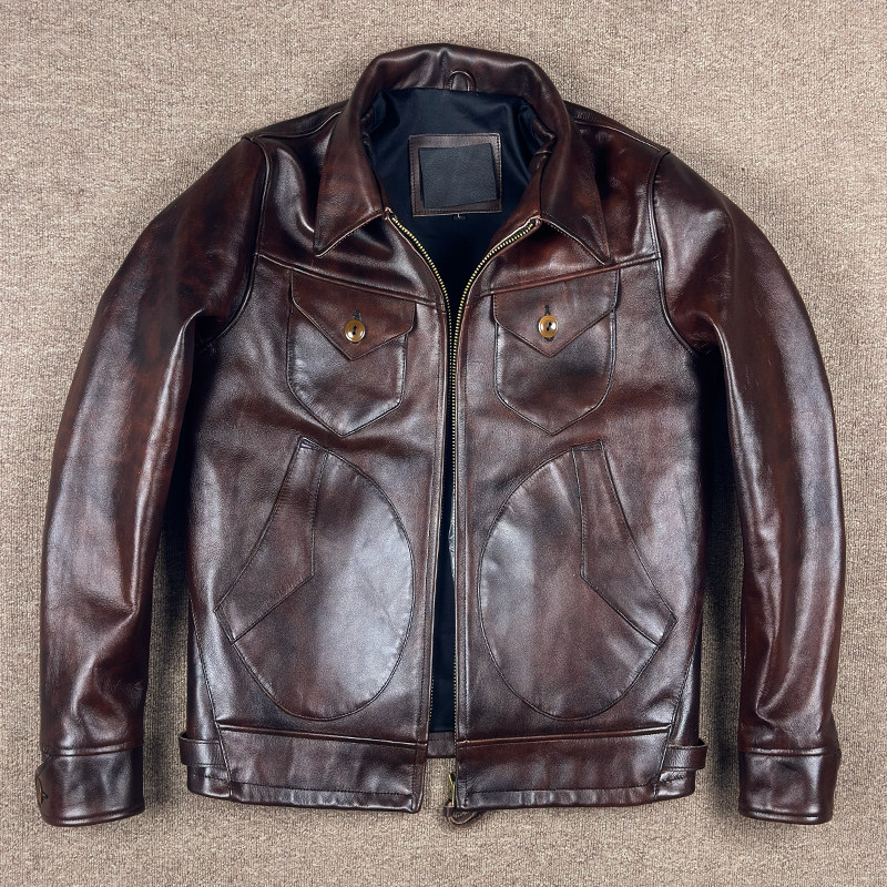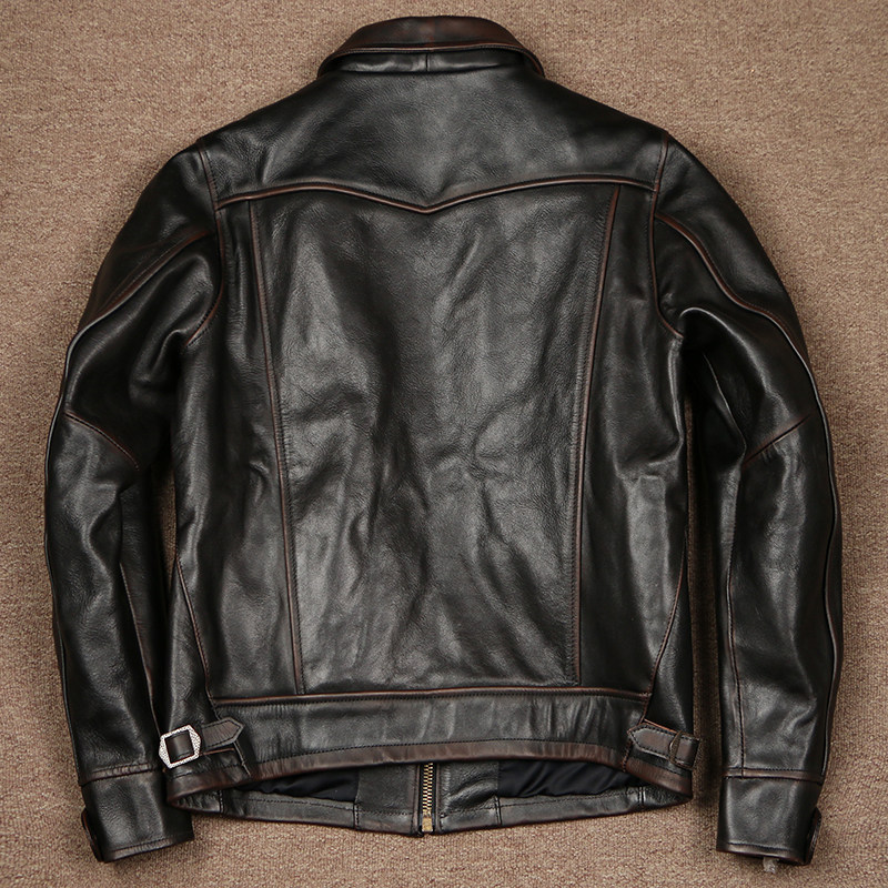 📚 1.8mm马皮门多萨双色水洗复古做旧男士皮夹克翻领农场主外套机车