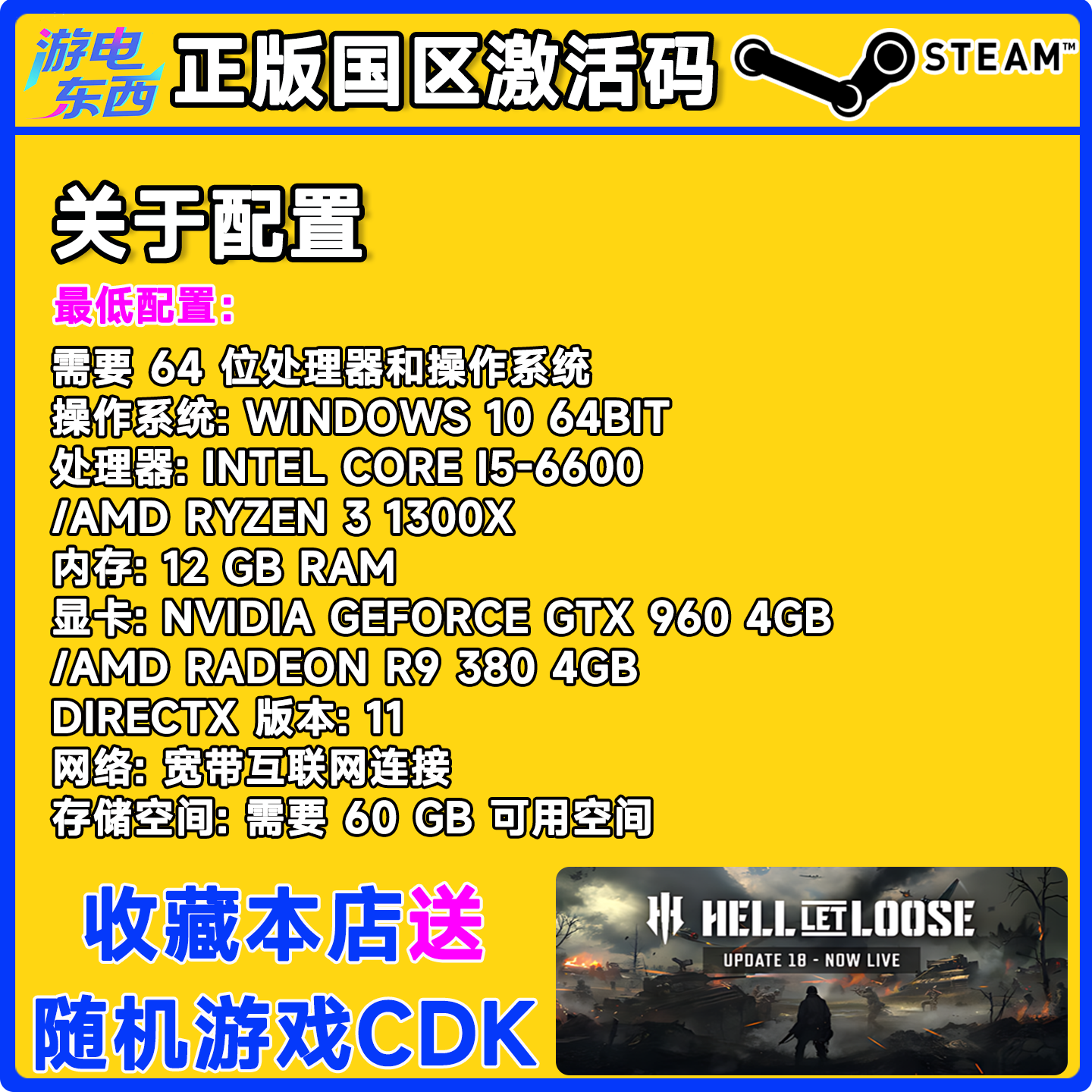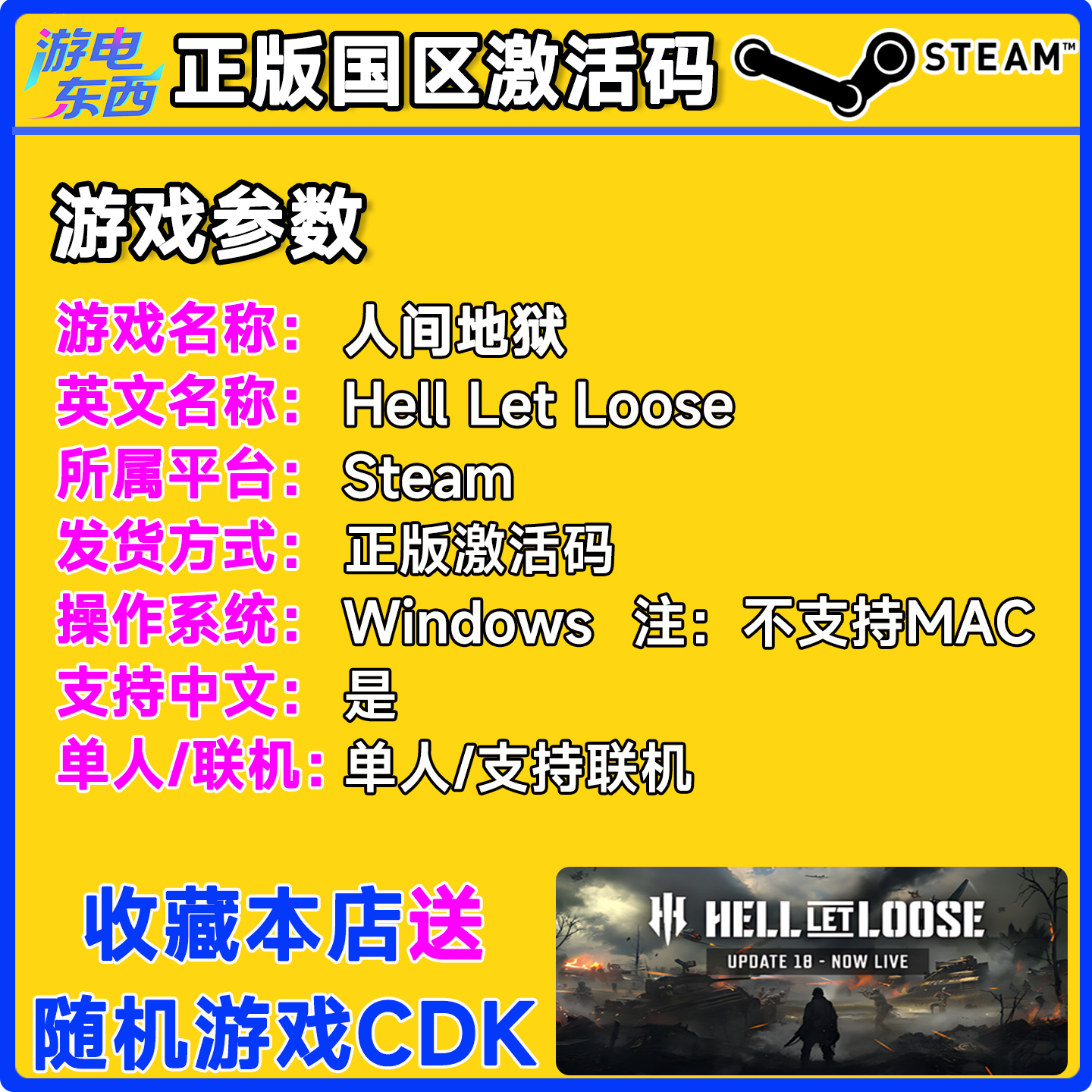 📚 steam正版游戏 人间地狱 Hell Let Loose 国区激活码CDK