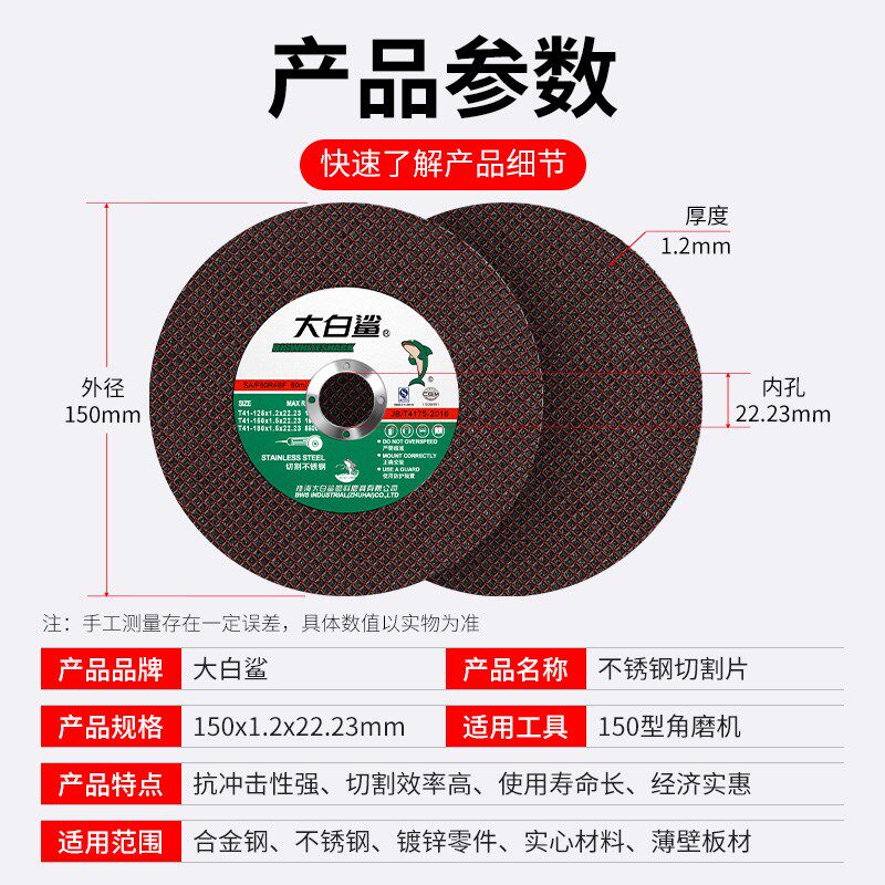 📚 大白鲨切割片150n角磨机砂轮片沙轮片不锈钢金属树脂打磨片超薄