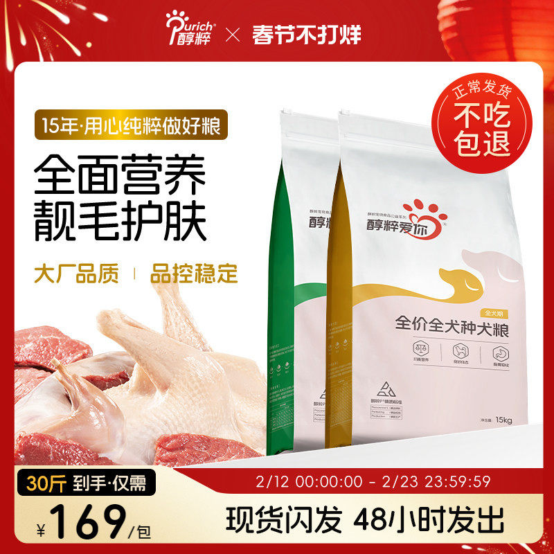 📚 醇粹爱你中大型犬粮15kg幼成犬通用型冻干多拼狗粮金毛柯基边牧