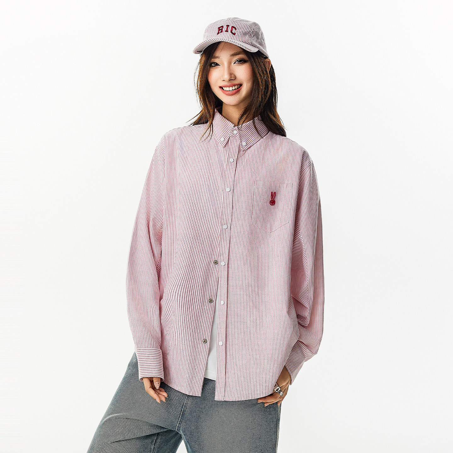 📚 RIC 漩涡兔条纹长袖衬衫男2025新款春秋季外套情侣潮牌衬衣女上衣