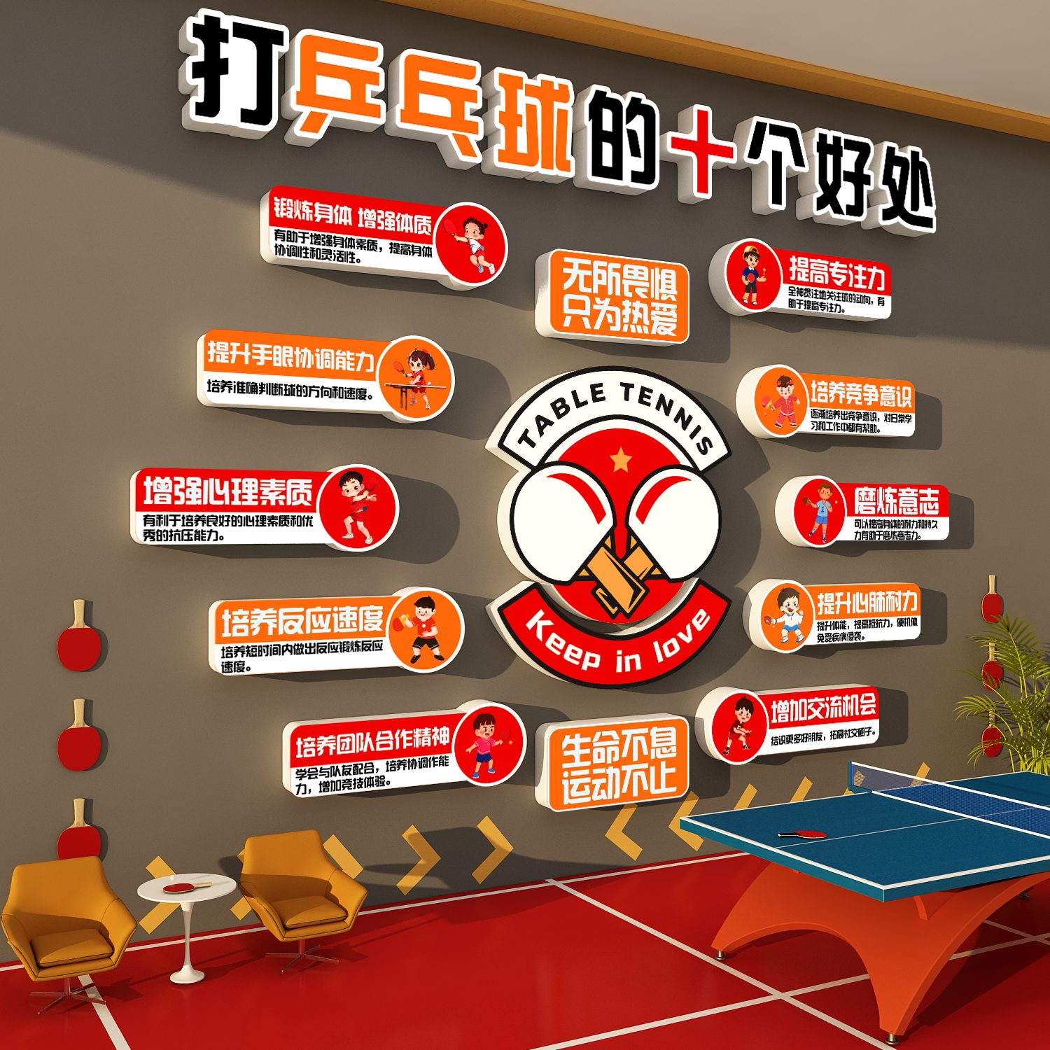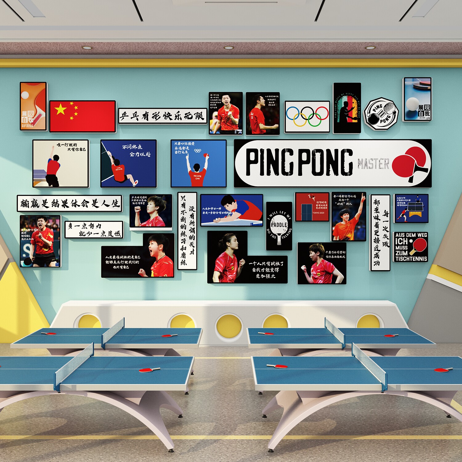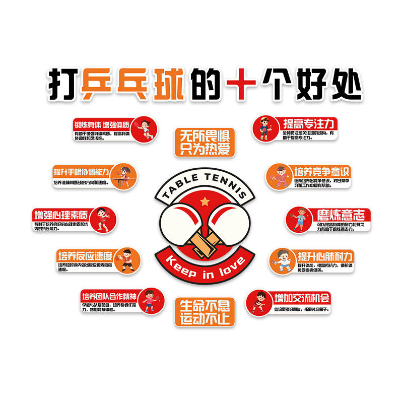 📚 乒乓球室装饰挂画体育运动场馆中心文化墙面贴纸海报标语布置宣传