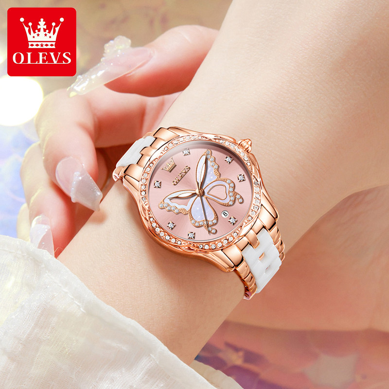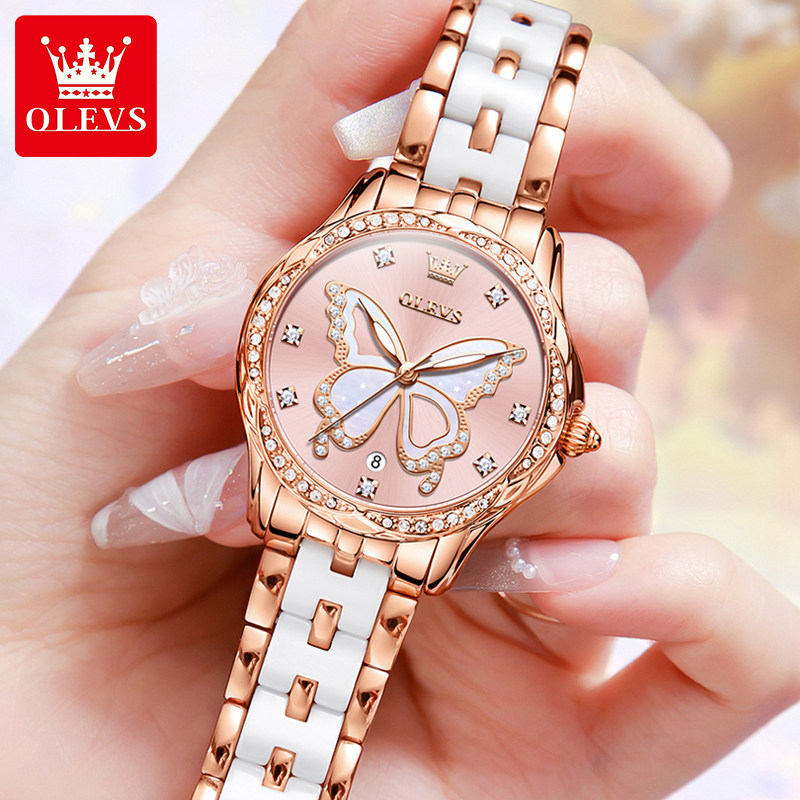 📚 欧利时正品女士手表女款石英表防水机械表蝴蝶陶瓷带镶钻时尚女表