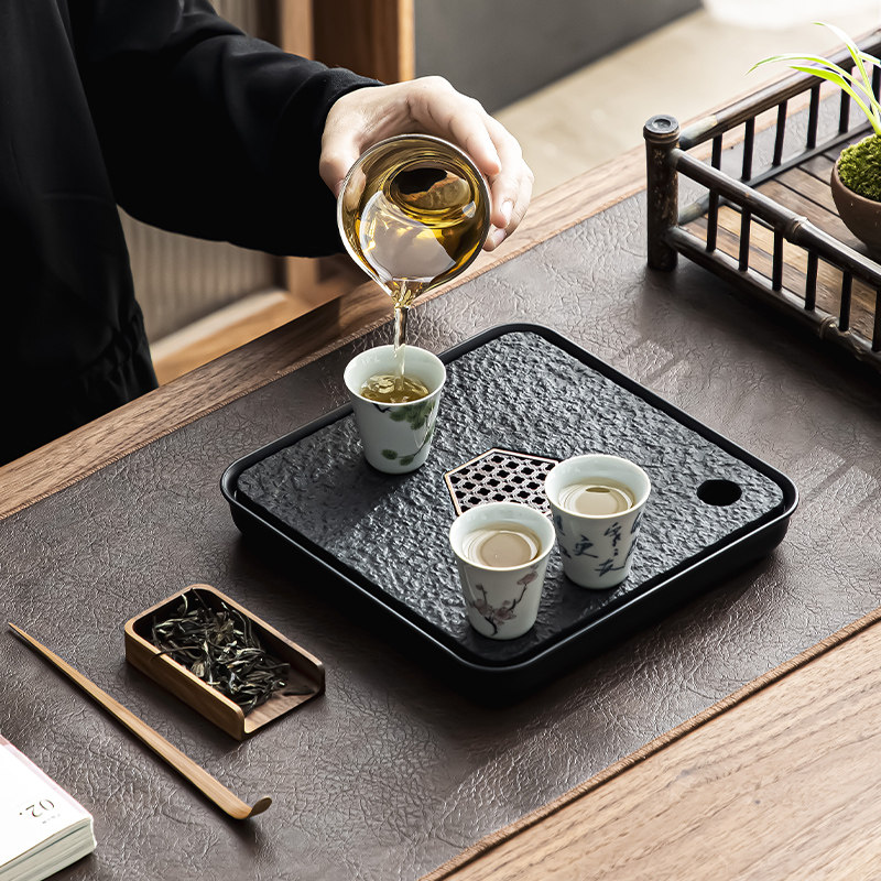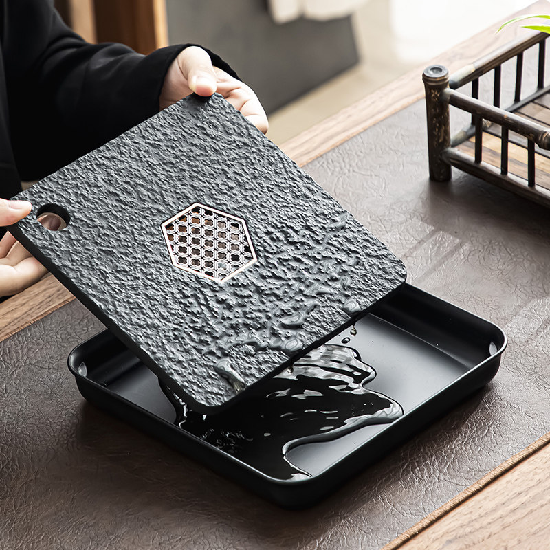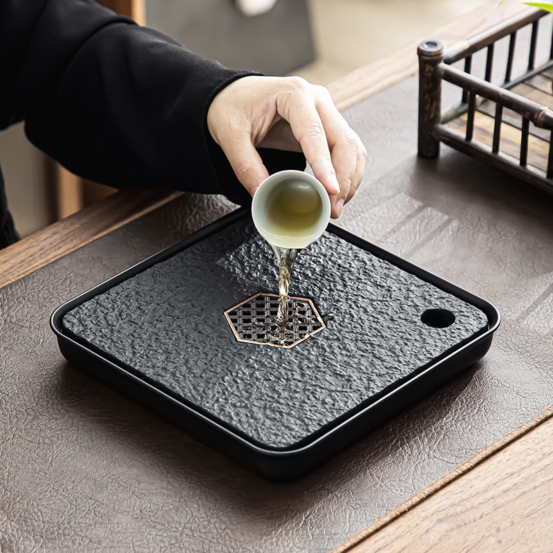 📚 轻奢现代仿乌金瓷石小茶盘家用储排水干泡台茶具茶杯托盘沥水茶海