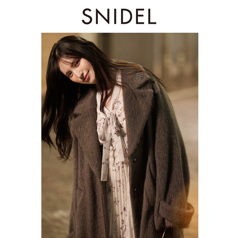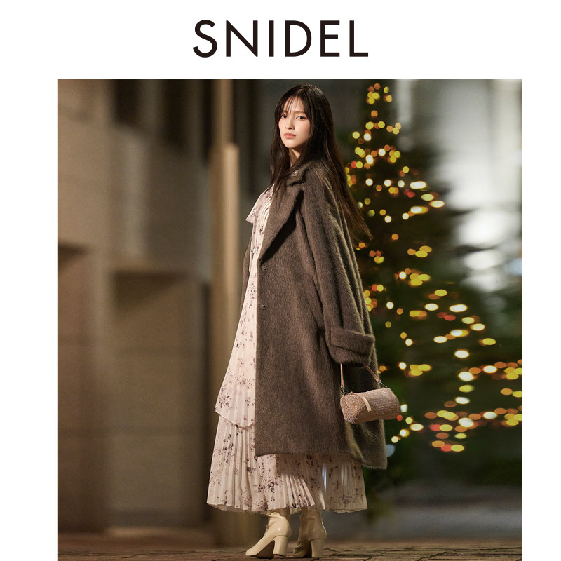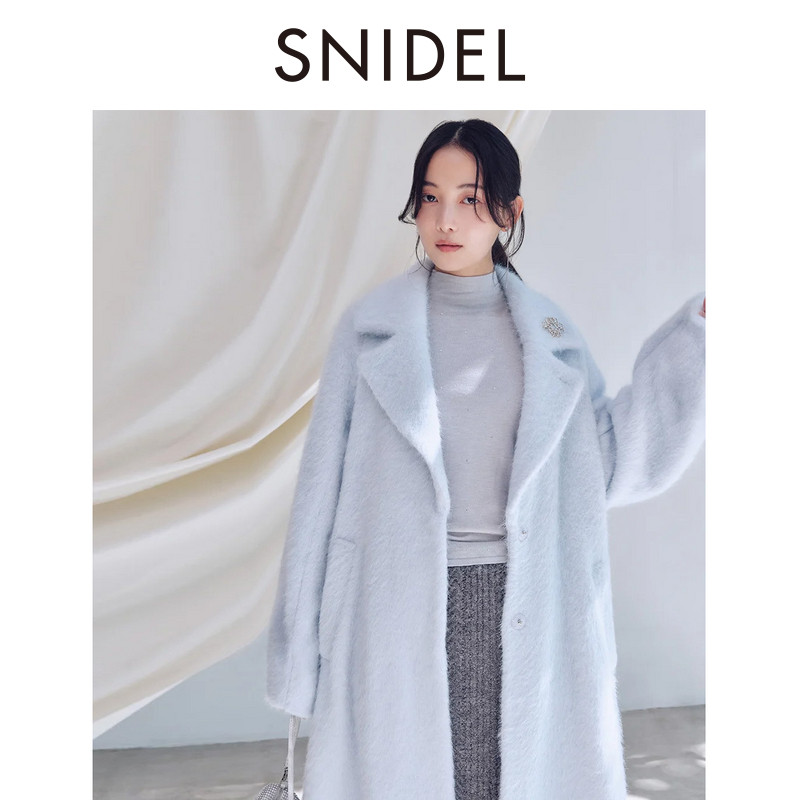 📚 SNIDEL2025秋冬新品简约翻领纯色毛呢大衣外套含胸针SWFC255060