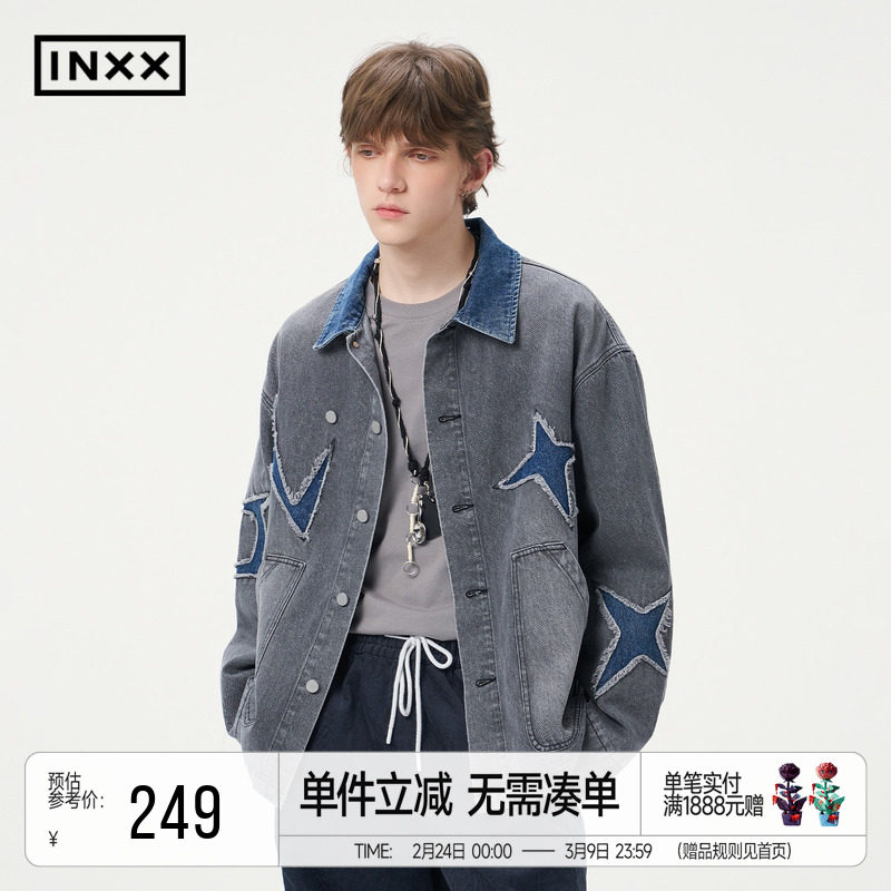 📚 INXX街头美式牛仔外套男女同款撞色拼接领口宽松夹克潮牌情侣