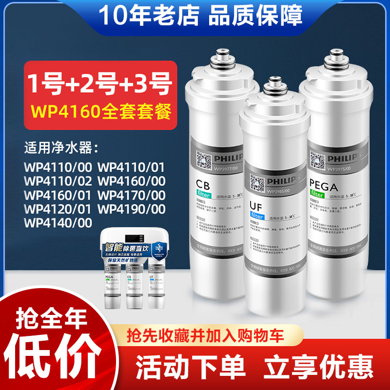 📚 飞利浦WP4160净水器WP4161净水机原装套滤芯WP3975+WP3977+WP3985