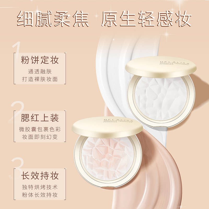 📚 妍丽/DELALISA狄娜丽莎奇妙转焕粉饼哑光柔焦持久定妆腮红二合一