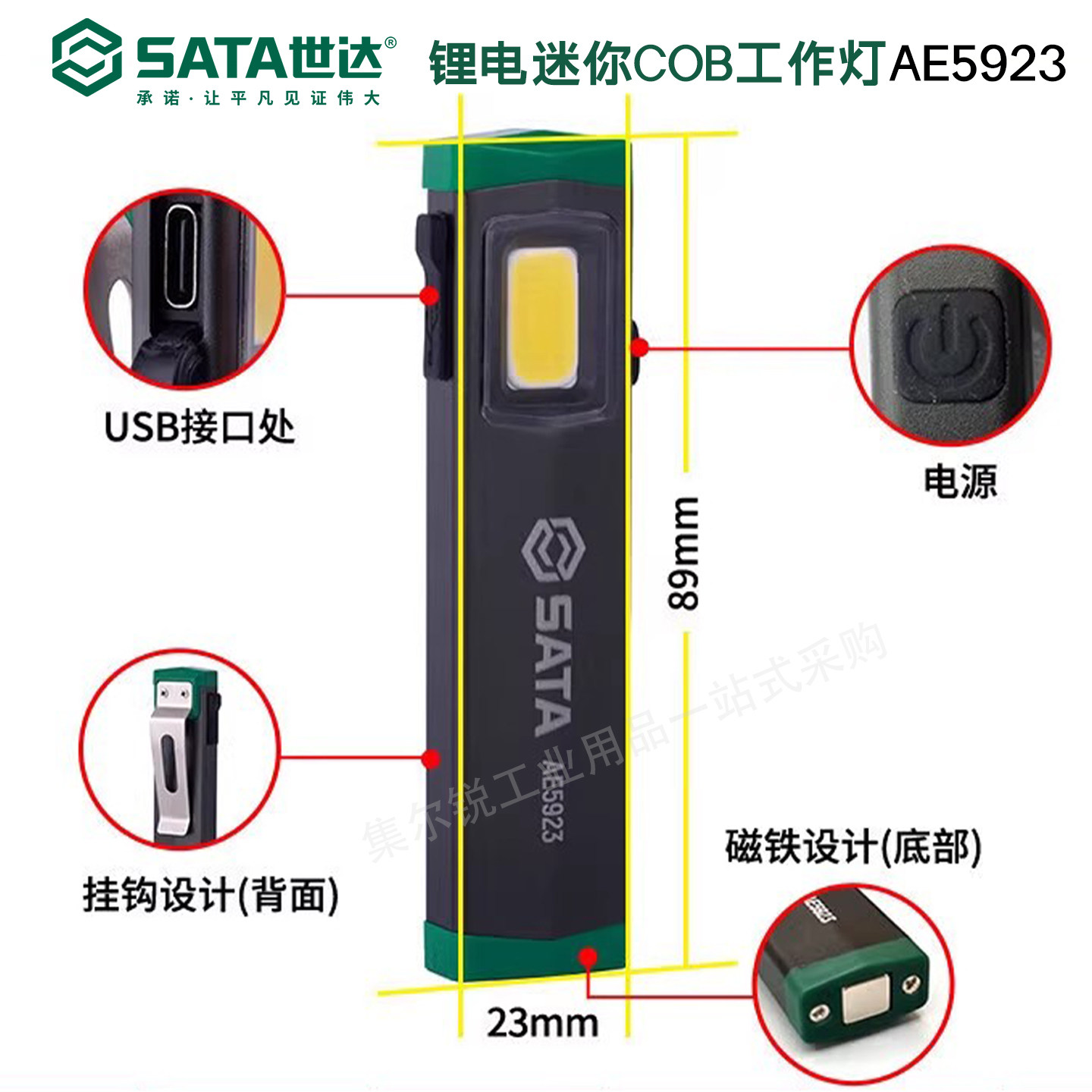📚 世达AE5923 强磁锂电迷你工作灯便携汽车维修COB灯家用强光手电筒