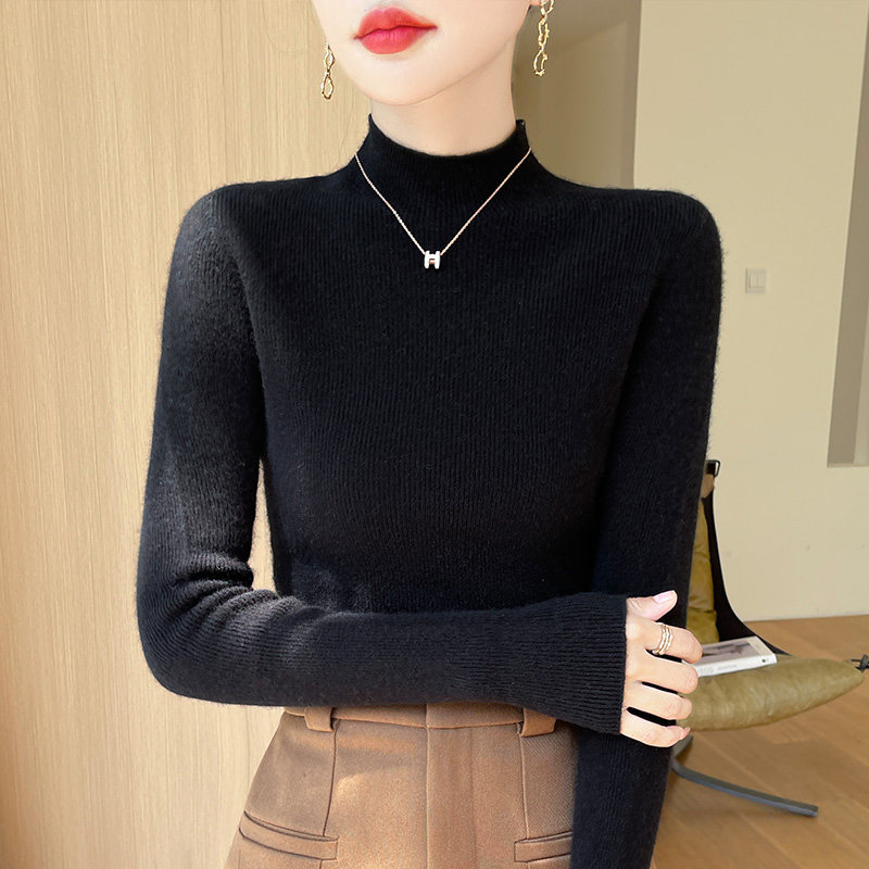 📚 一线成衣羊毛衫半高领中袖针织衫修身高级感半袖打底衫五分袖上衣