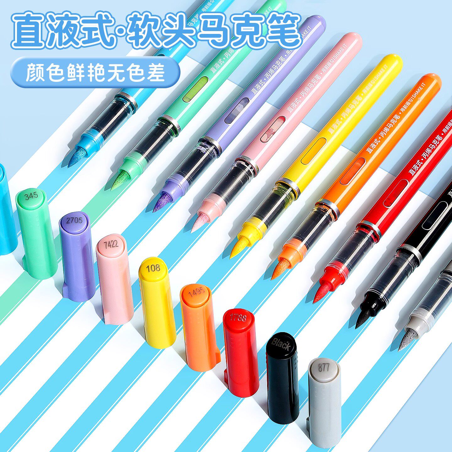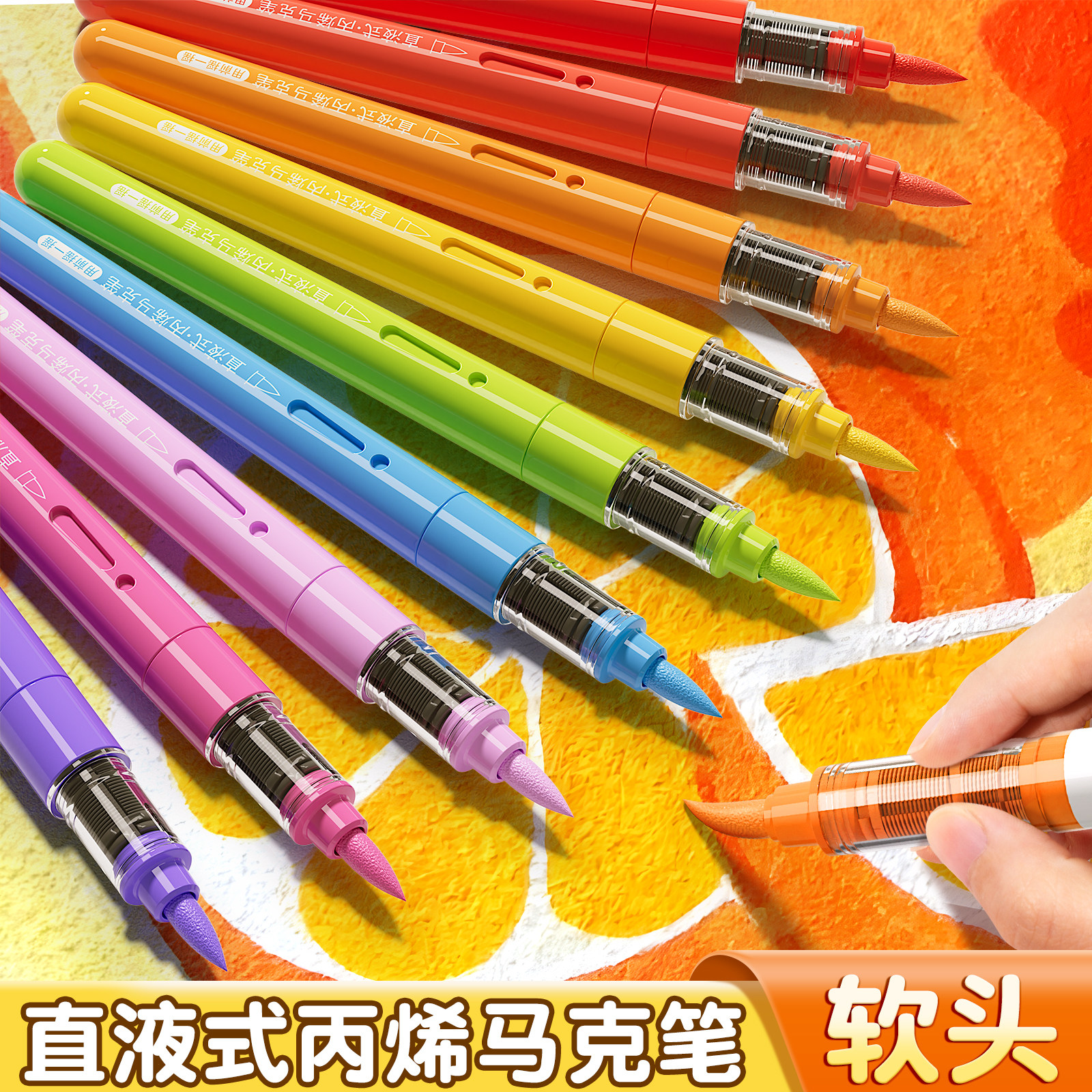 📚 直液式丙烯马克笔水彩笔软头儿童可水洗小学生美术专用不透色可叠色幼儿园画笔48色绘画24彩色笔炳稀笔芯60