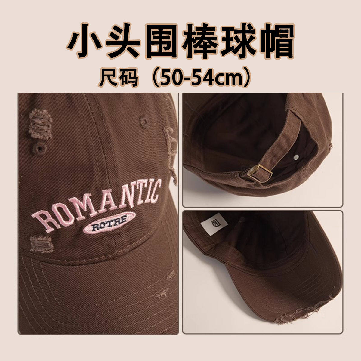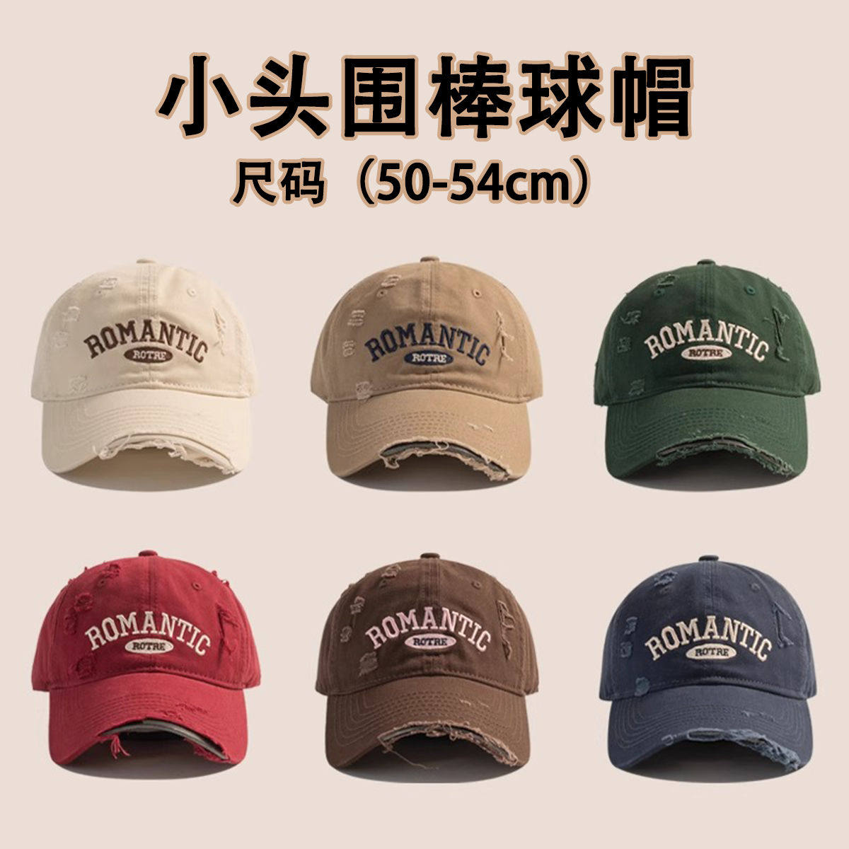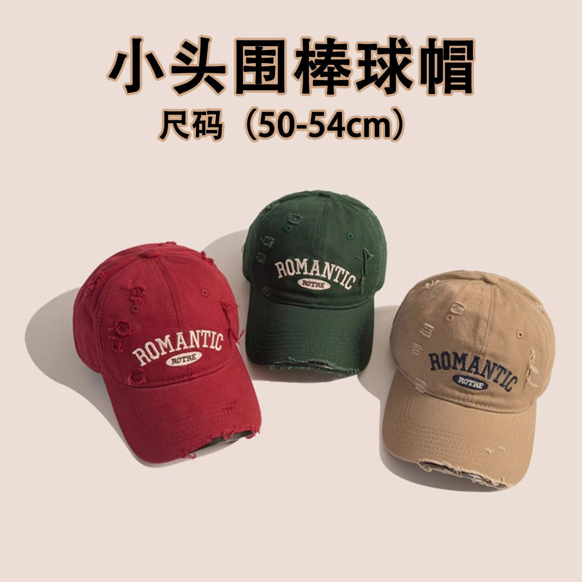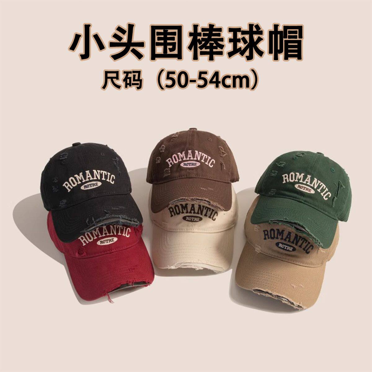 📚 xs超小号54cm小头围浅顶棒球帽子男女小码弯檐鸭舌帽子水洗