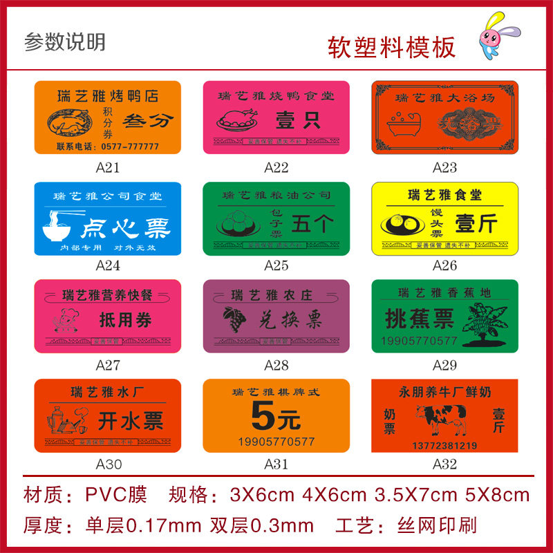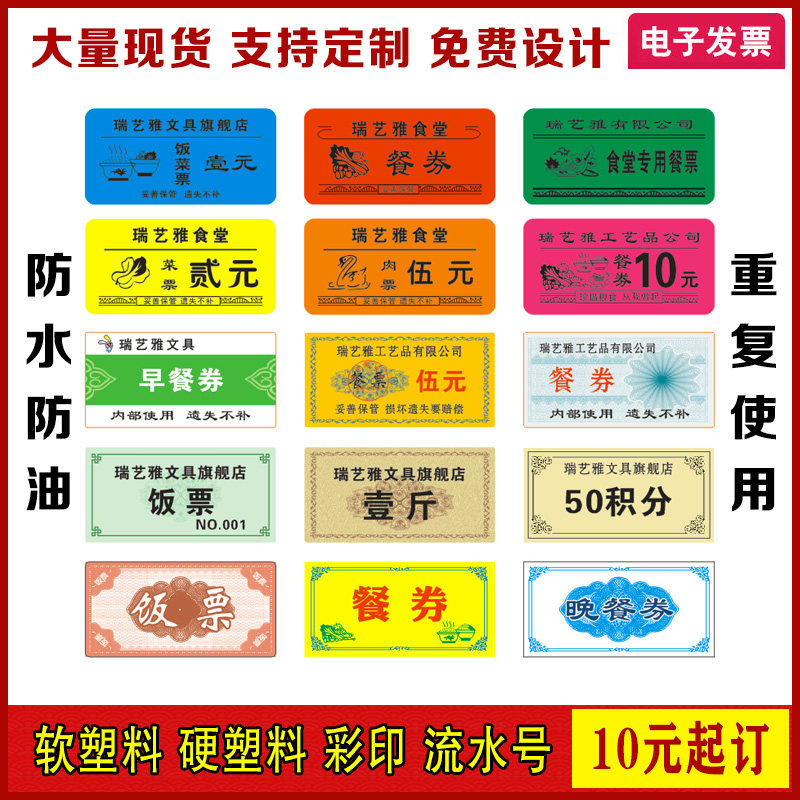📚 订制作塑料饭票食堂饭菜票洗澡馒头票积分卡代金券早中午晚就餐券定做用餐卷印刷开水票客票员工票香蕉票定做