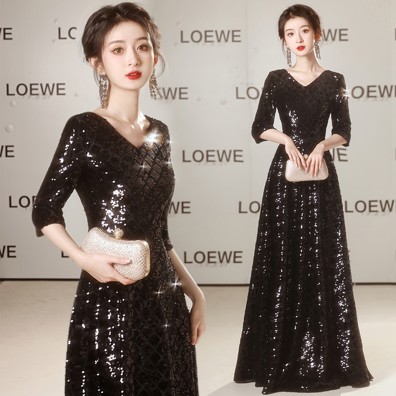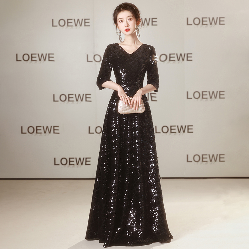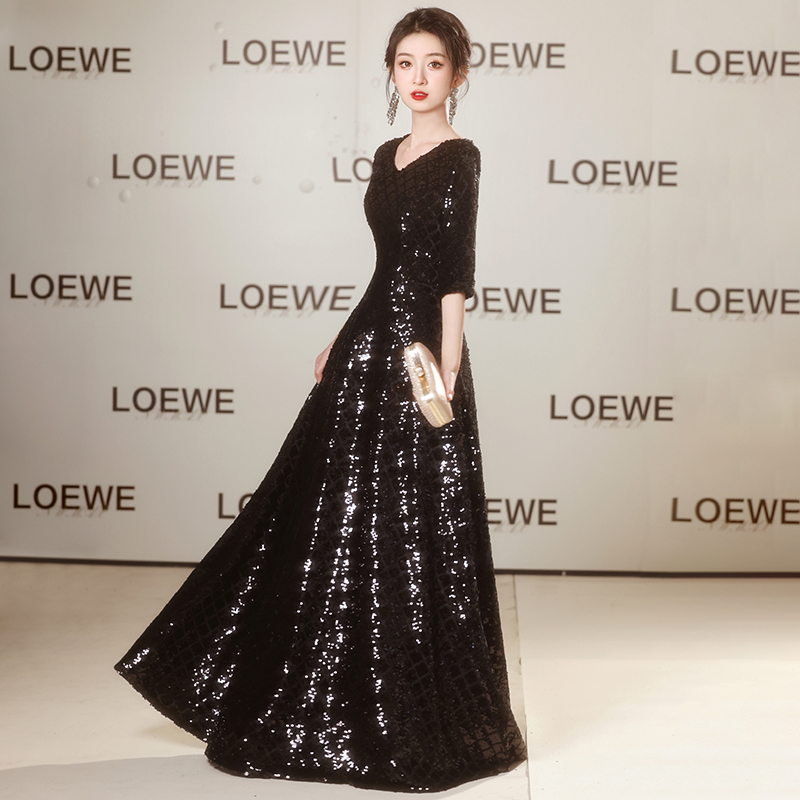 📚 新款黑色合唱演出长款晚礼服装指挥钢琴主持年会走秀艺考大码长裙