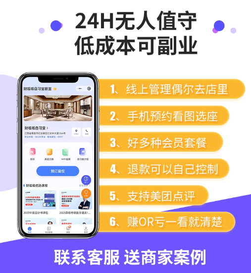 📚 共享自习室预约管理系统无人值守茶室系统会议室预约小程序