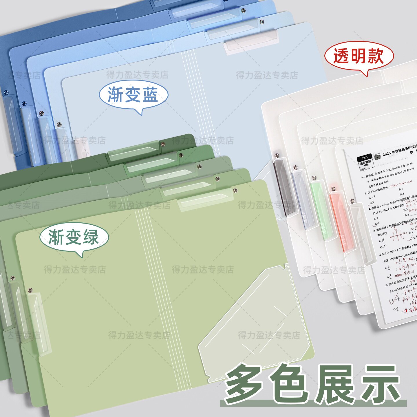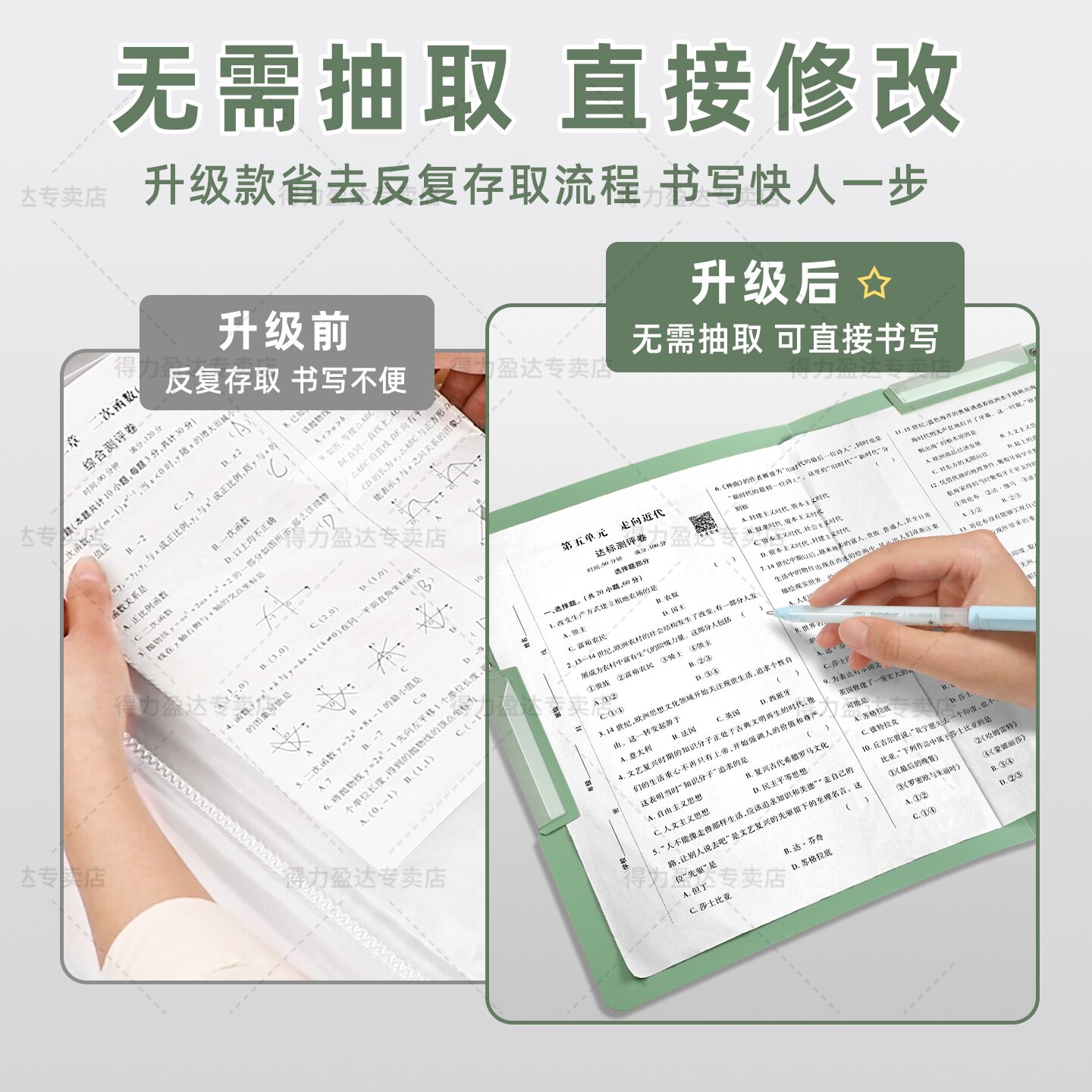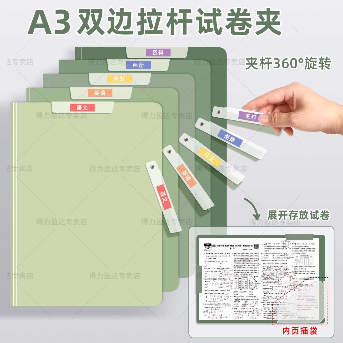 📚 得力A3双拉杆试卷夹旋转抽杆夹卷子整理收纳袋小学生初中高中专用活页插页侧开拉杆文件夹透明翻页a4纸资料夹