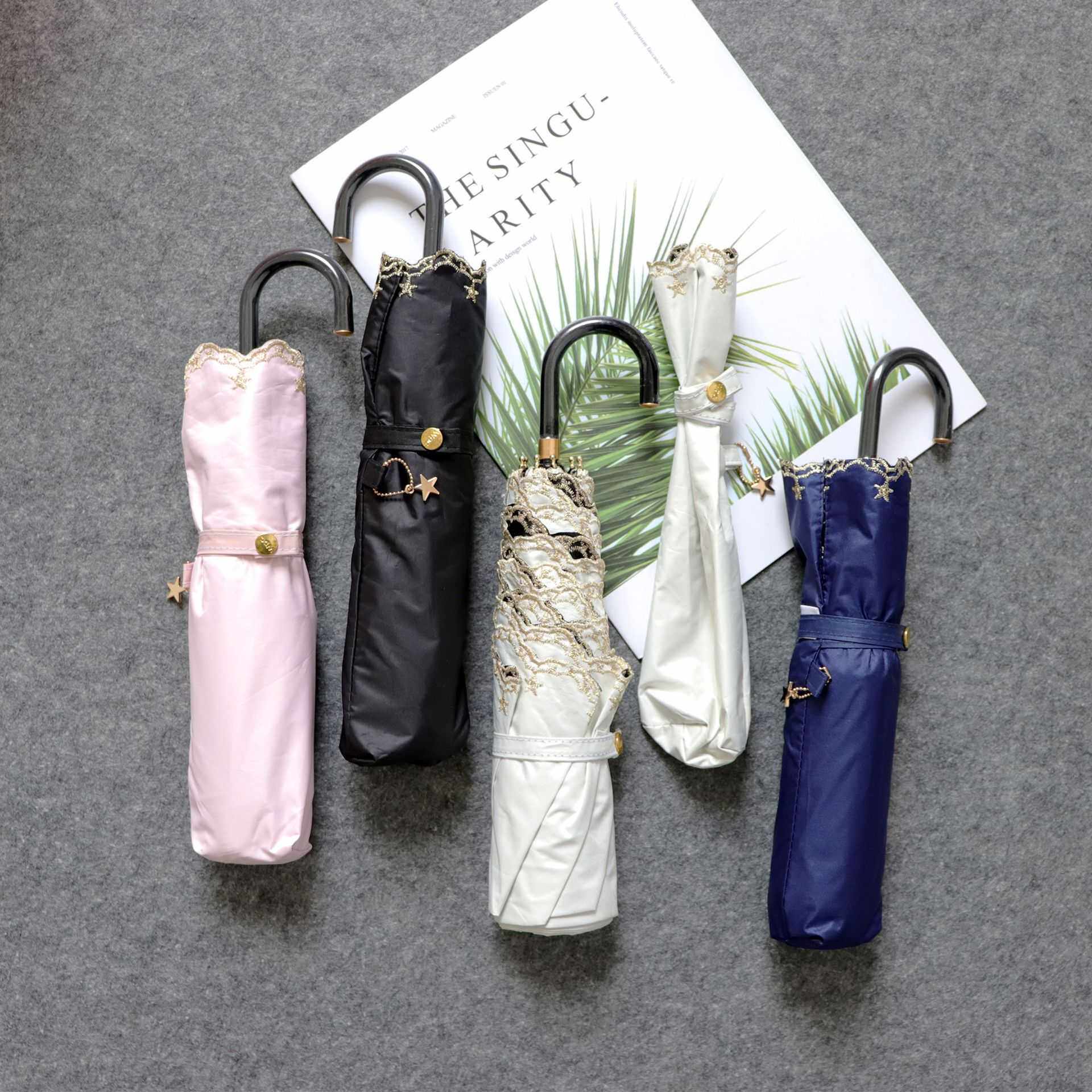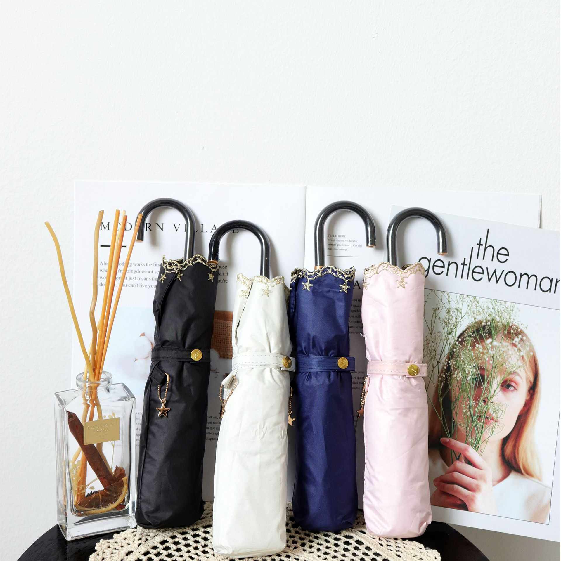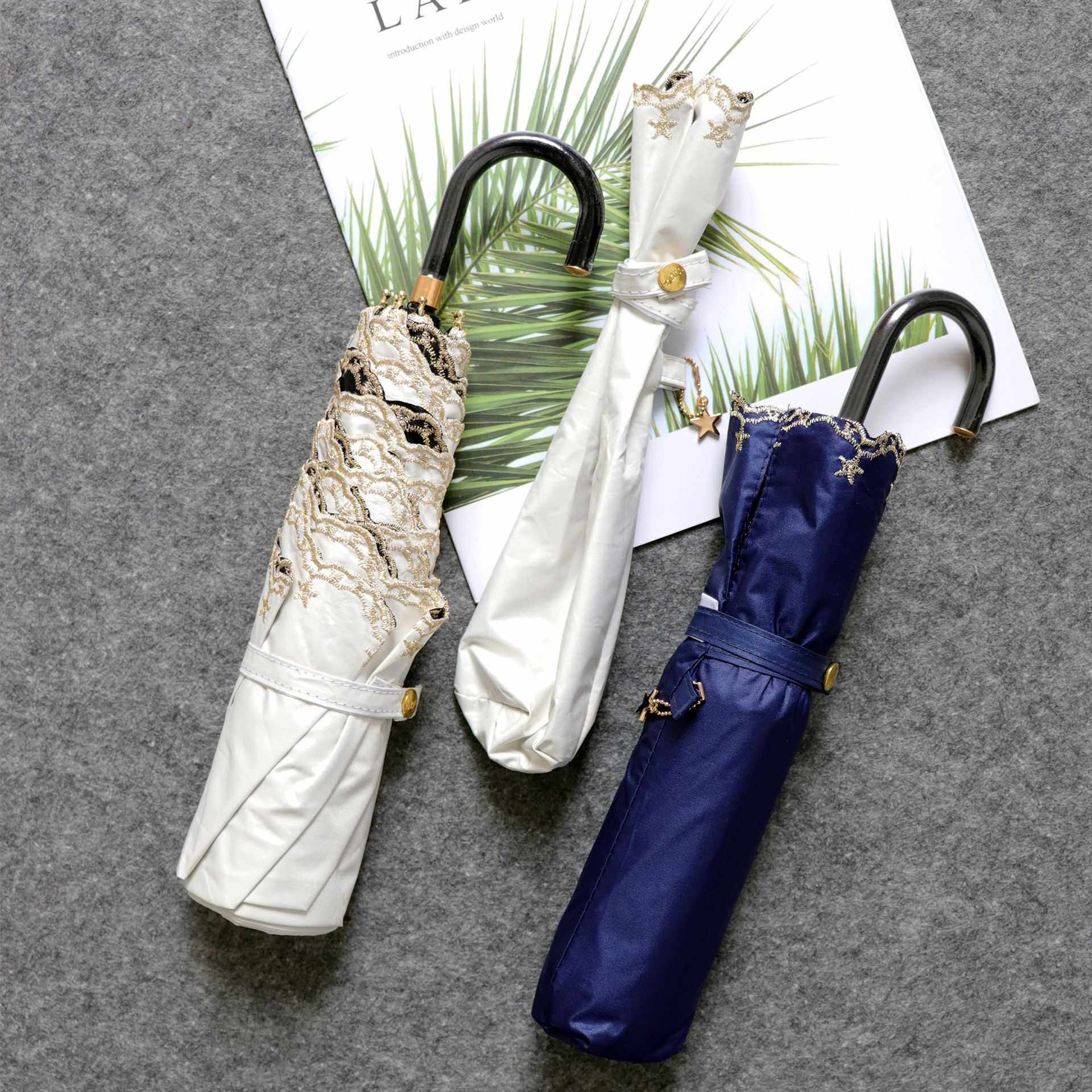📚 新款直销超轻碳纤维雨伞弯钩折叠伞三折伞黑胶防紫外线遮阳伞女刺