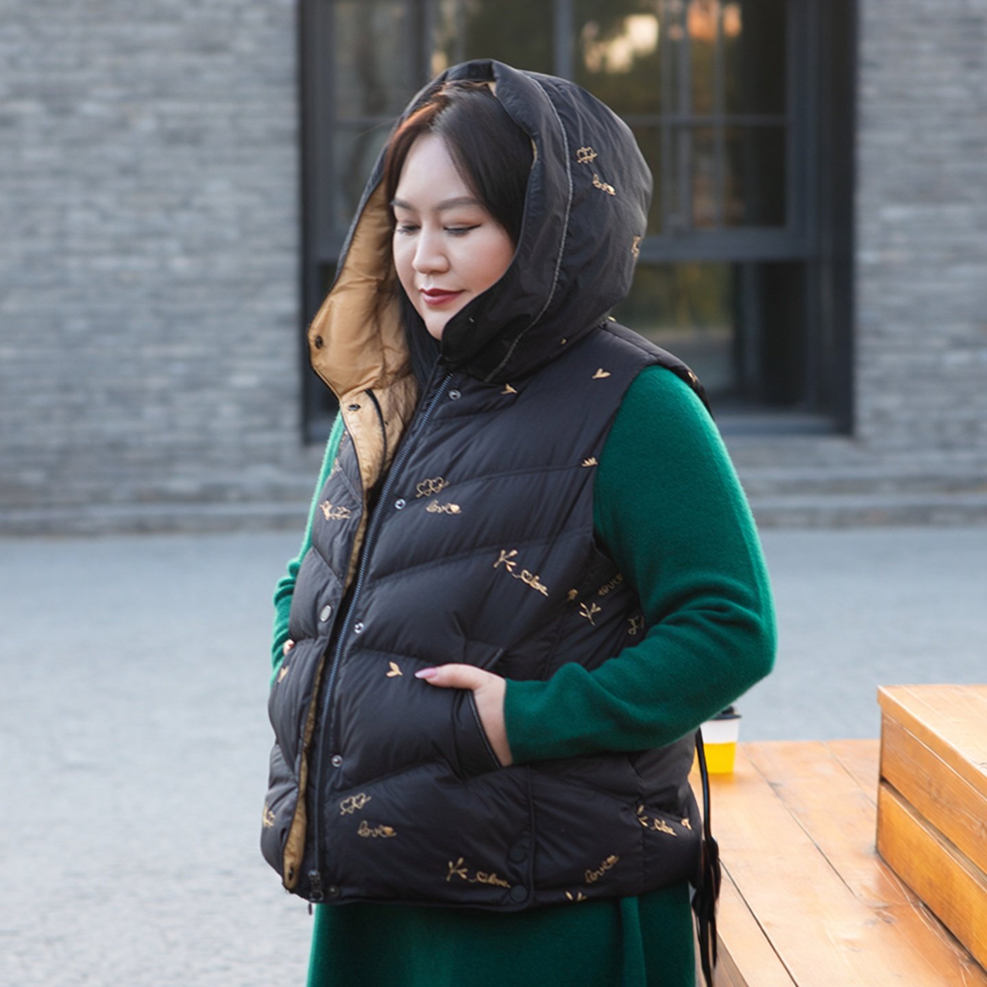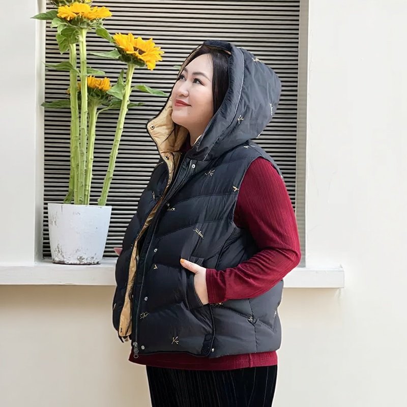 📚 【90白鹅绒】美丽客栈高端大码黑色羽绒马甲胖mm连帽短款保暖背心