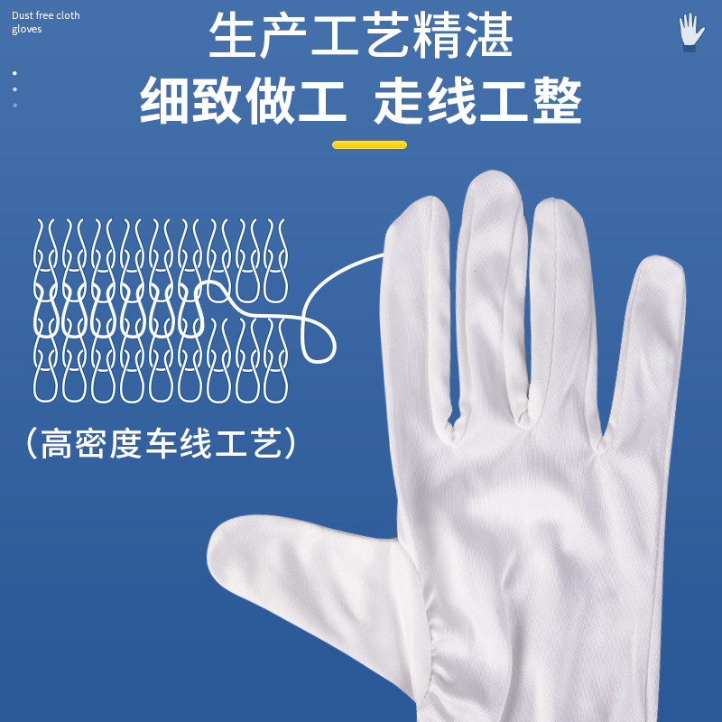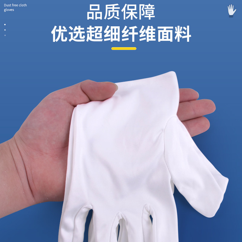 📚 超细纤维无尘布手套珠宝礼仪无纺布白手套车间防护无尘手套不掉毛