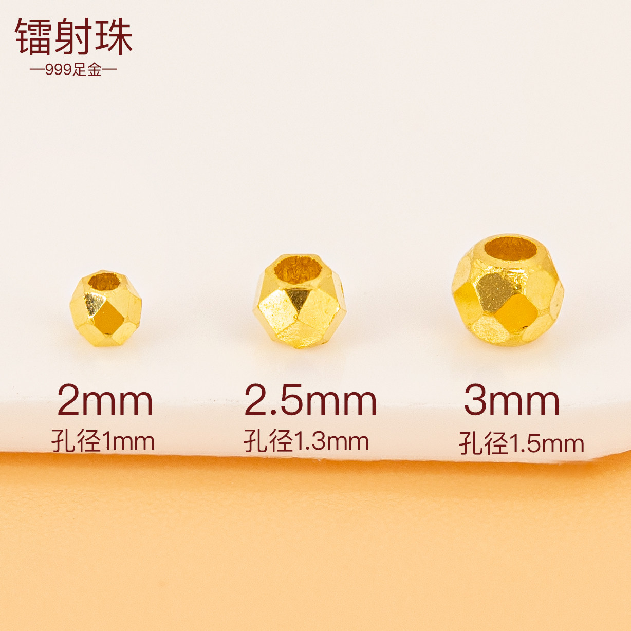 📚 足金999小尺寸蹦迪珠小金珠镭射珠黄金手串光面隔珠散珠迷你金珠