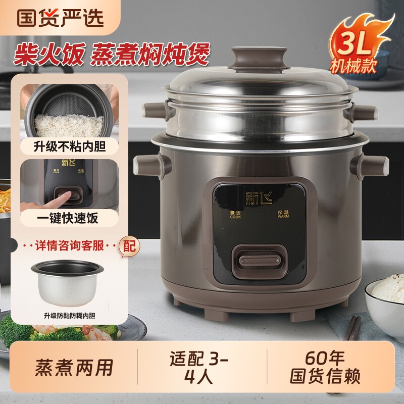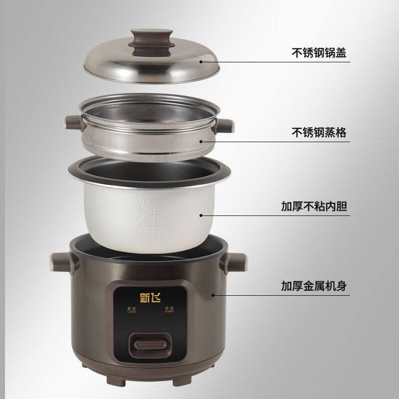📚 新飞电饭锅电饭煲家用煮饭锅老式带蒸笼多功能蒸煮一体小型不锈钢