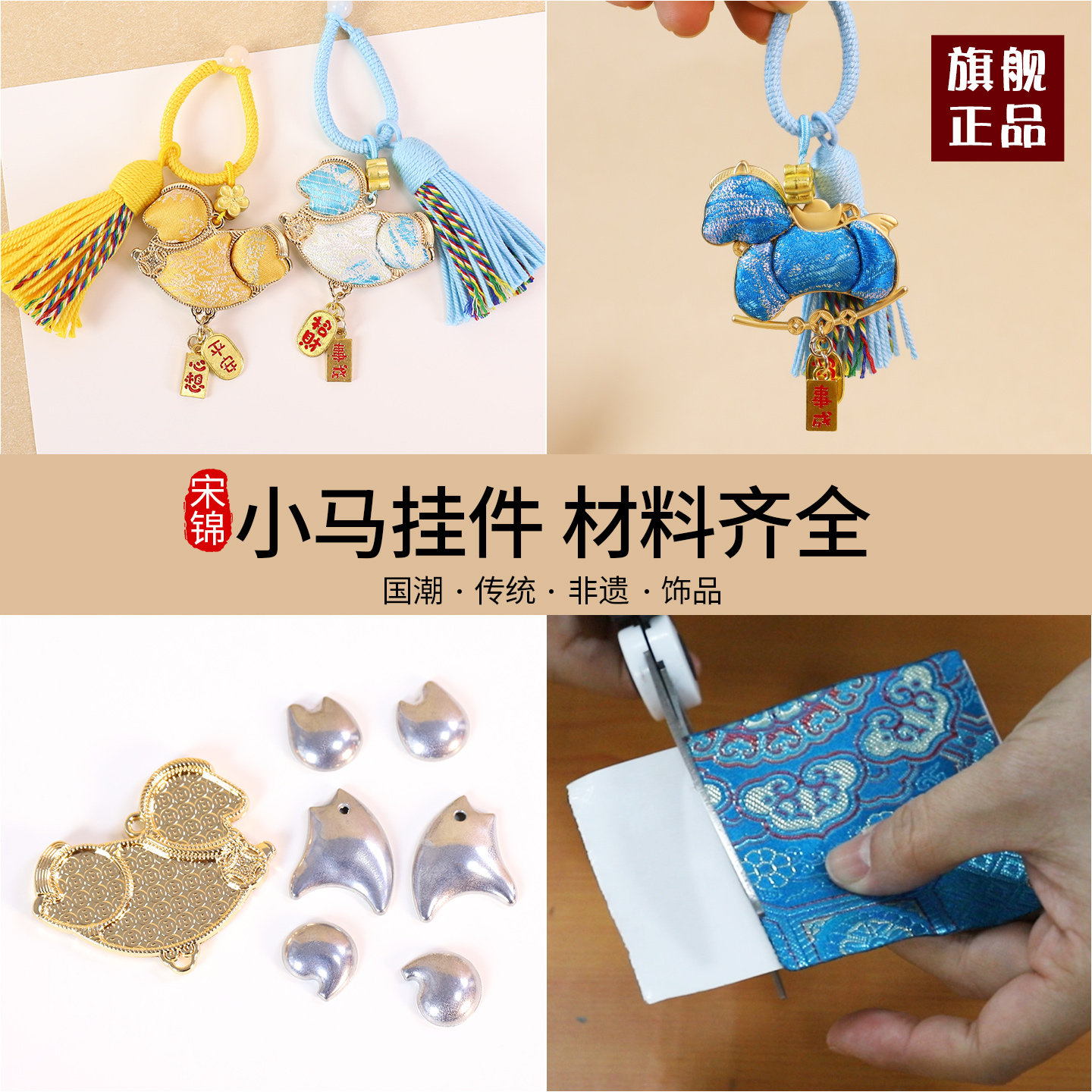 📚 妇女节非遗手工宋锦小马上有钱挂件diy材料包国潮钥匙扣车载挂饰