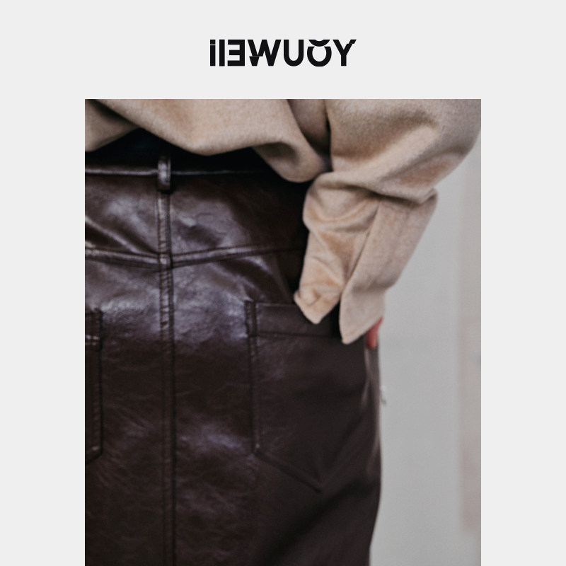 📚 YOUWEI有尾2024冬季复古包臀半身裙女皮裙前后开叉Y5824428