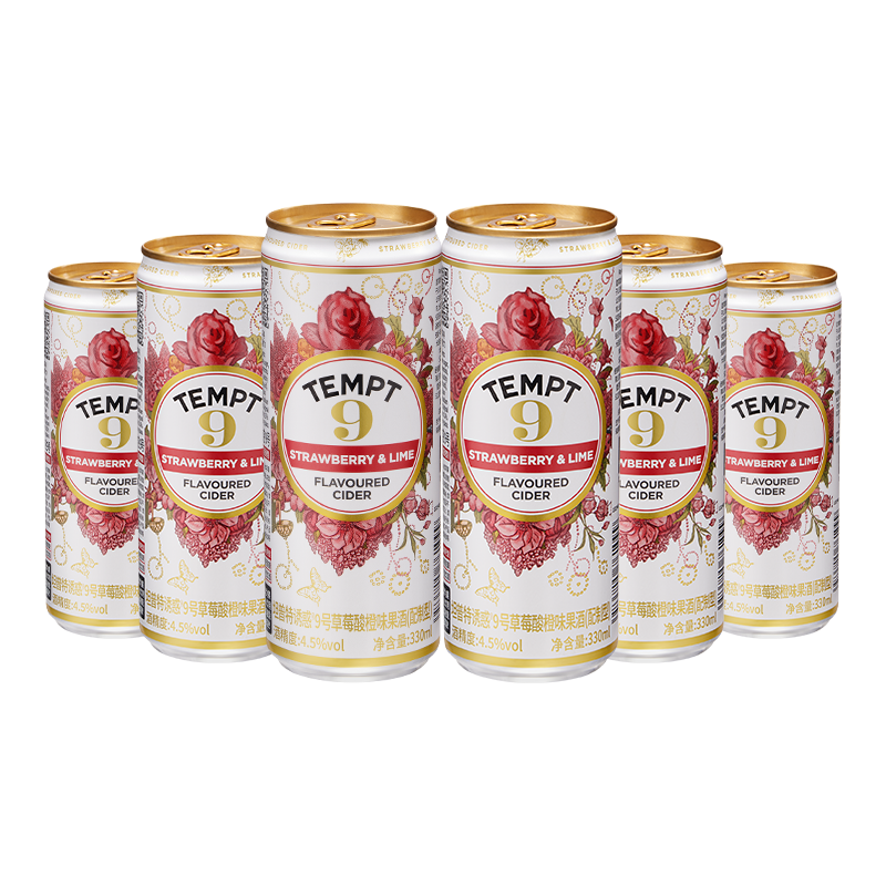📚 TEMPT诱惑9号草莓酸橙味易拉罐装西打果酒微醺低度甜酒气泡水果酒