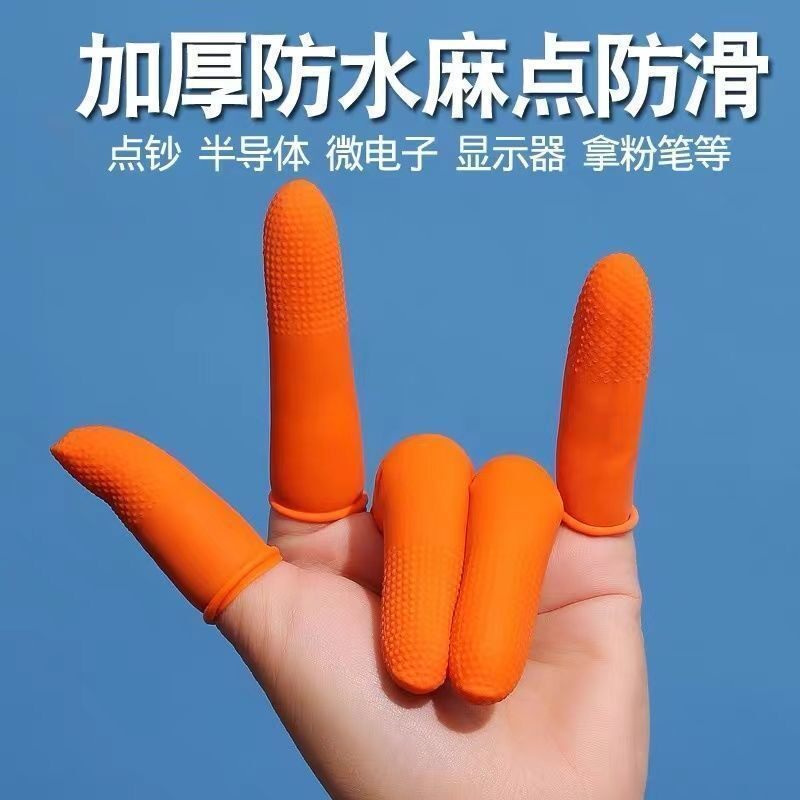 📚 橙色麻点橡胶防滑工作手指套耐磨加厚乳胶防护点钞分翻页防污指套