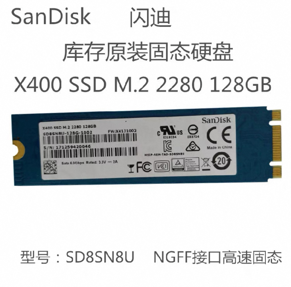 📚 适用于闪迪X400 X600 128G SSD固态硬盘M.2 2280 NGFF SATA协议