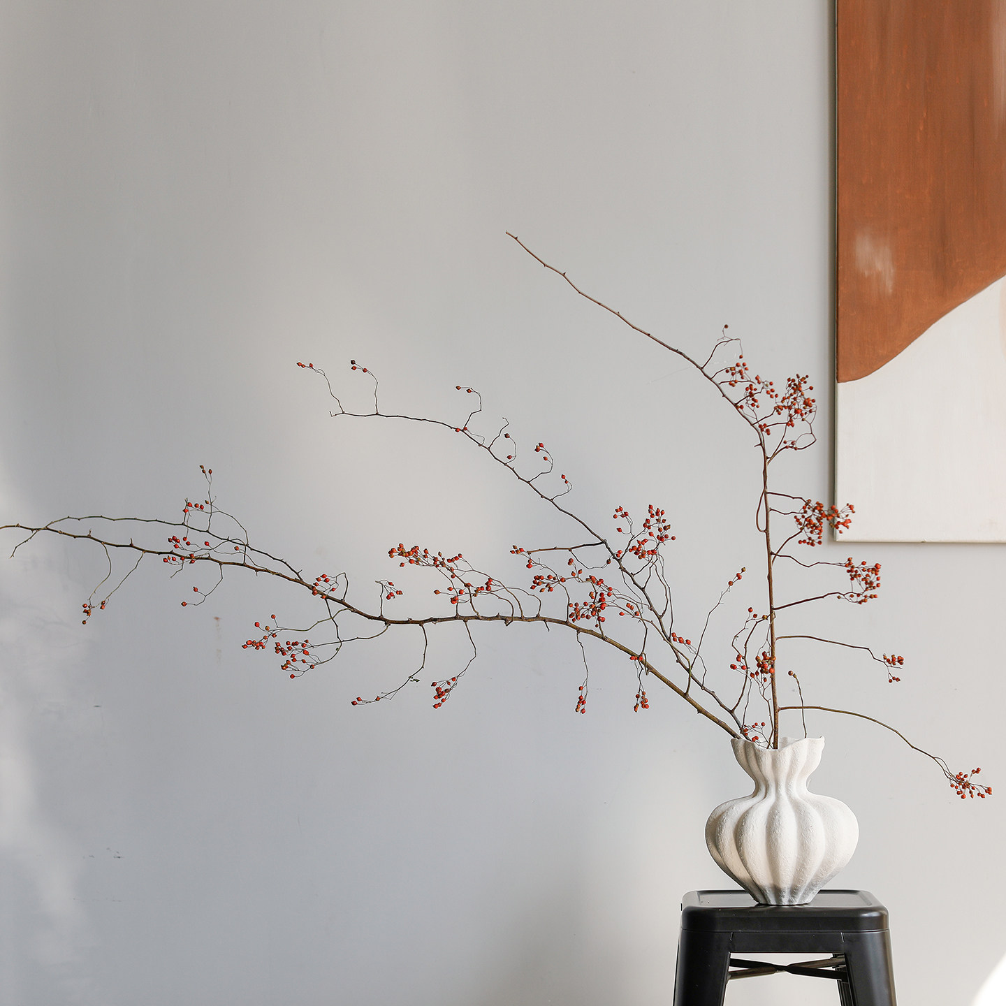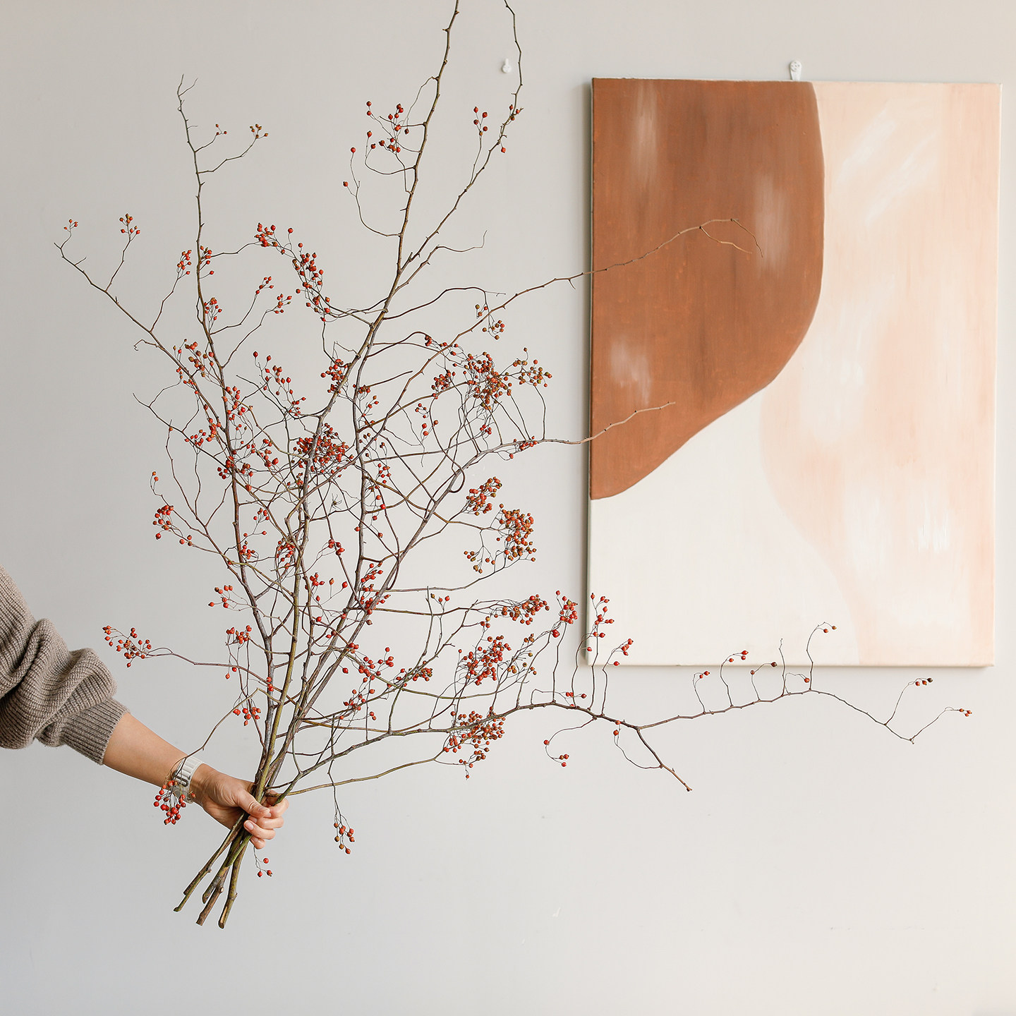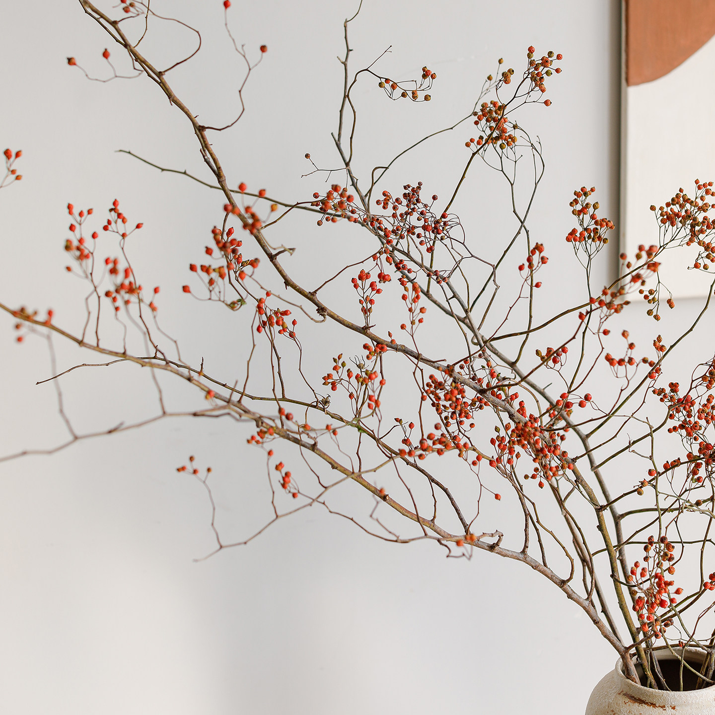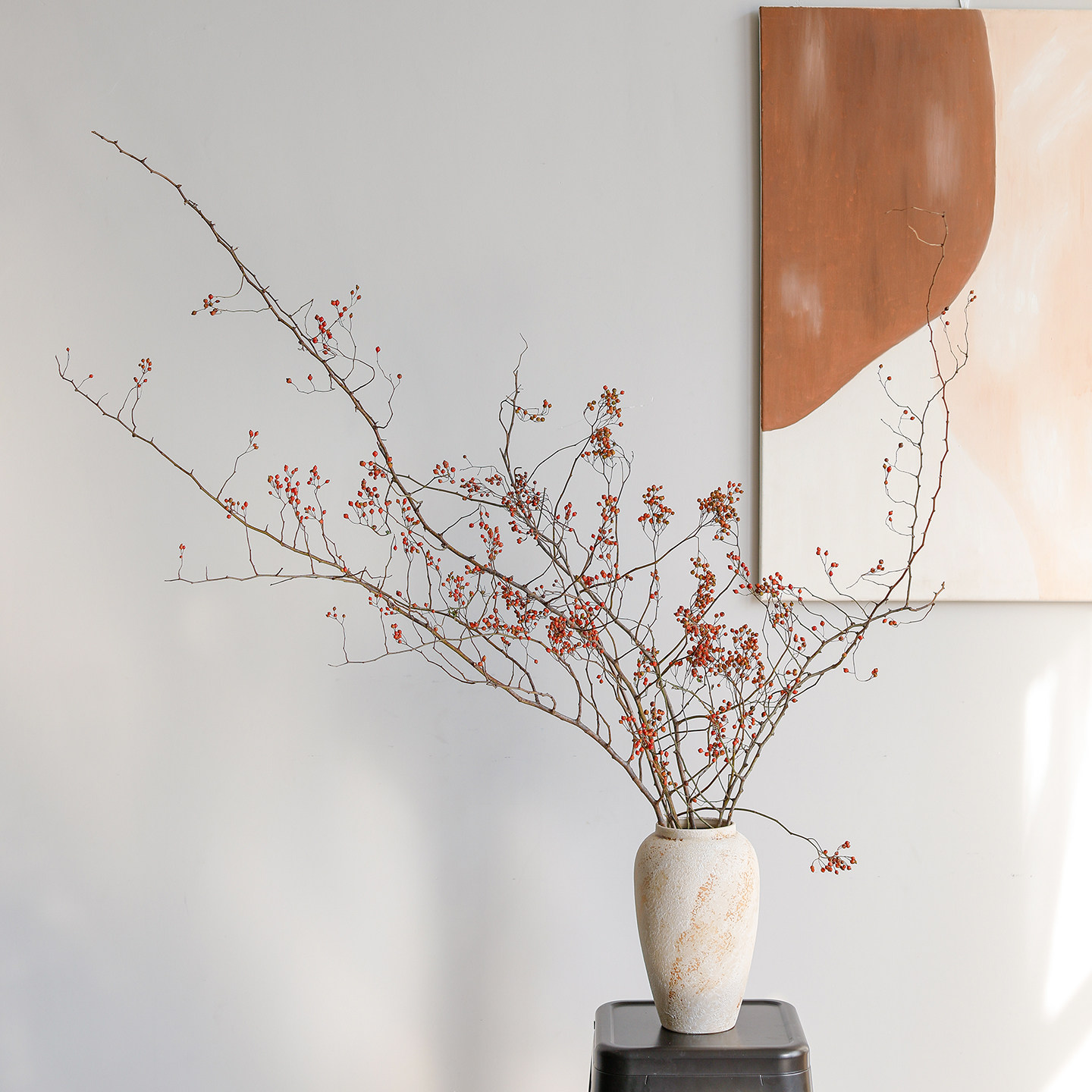 📚 风干山归来真花干花蔷薇果干树枝插花客厅玄关侘寂风摆设天然植物