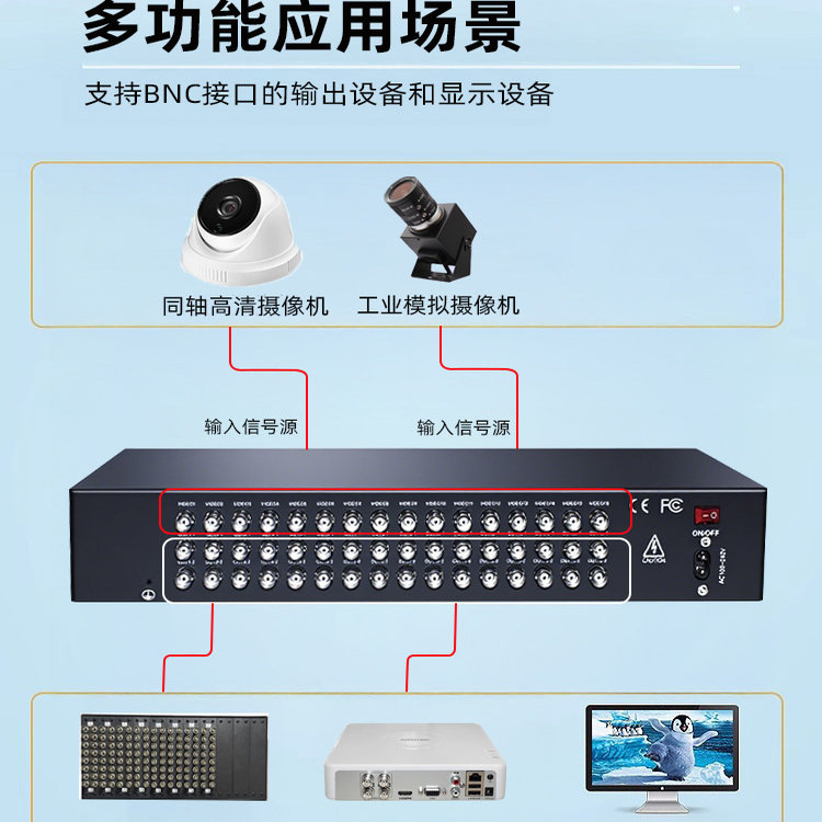📚 监控视频同轴高清BNC分配器16进32出分支器分屏器1分2模拟机架式