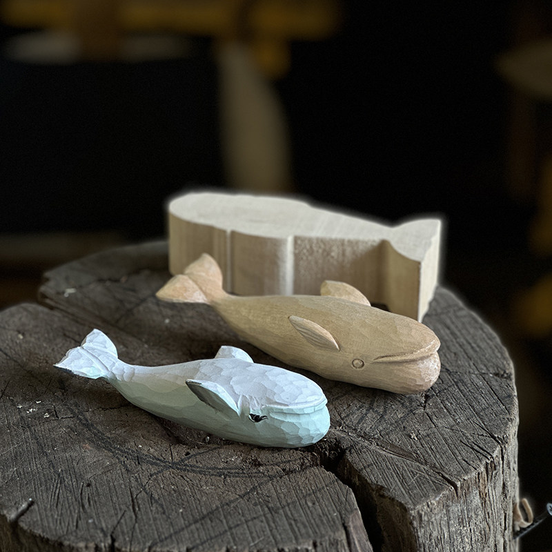 📚 新手手工雕刻木头鲸鱼椴木模型摆件玩具手工diy材料包创意礼物