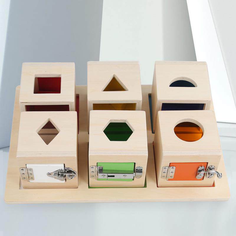 📚 蒙特梭利形状认知日常生活教具塞塞乐形状盒六格锁箱益智木质玩具