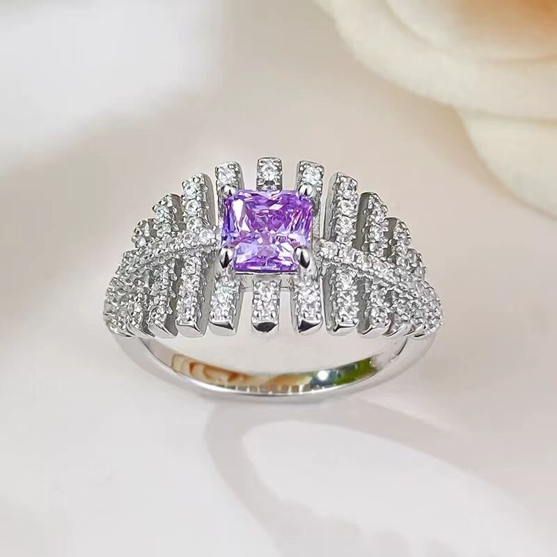 📚 18K白金D色莫桑石粉紫树叶戒指纯银小众设计感时尚百搭指环精致