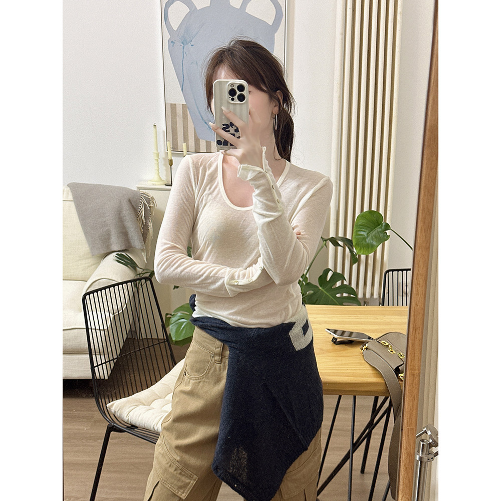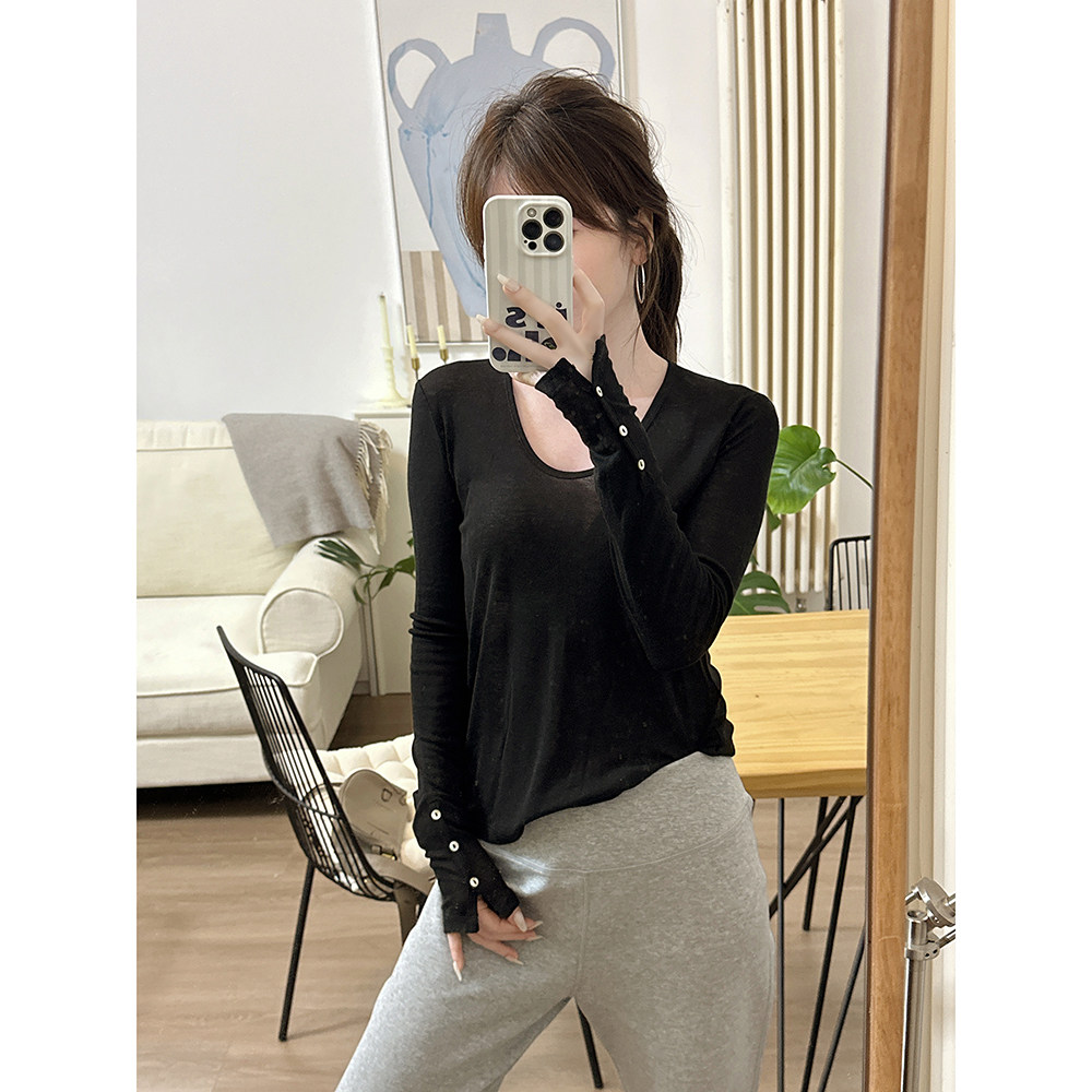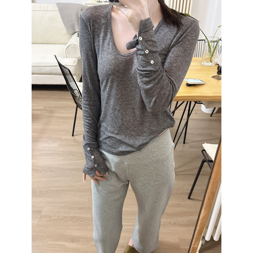 📚 颓废家一生推经典不挑人百搭气质锁骨羊毛莱赛尔T恤内搭上衣