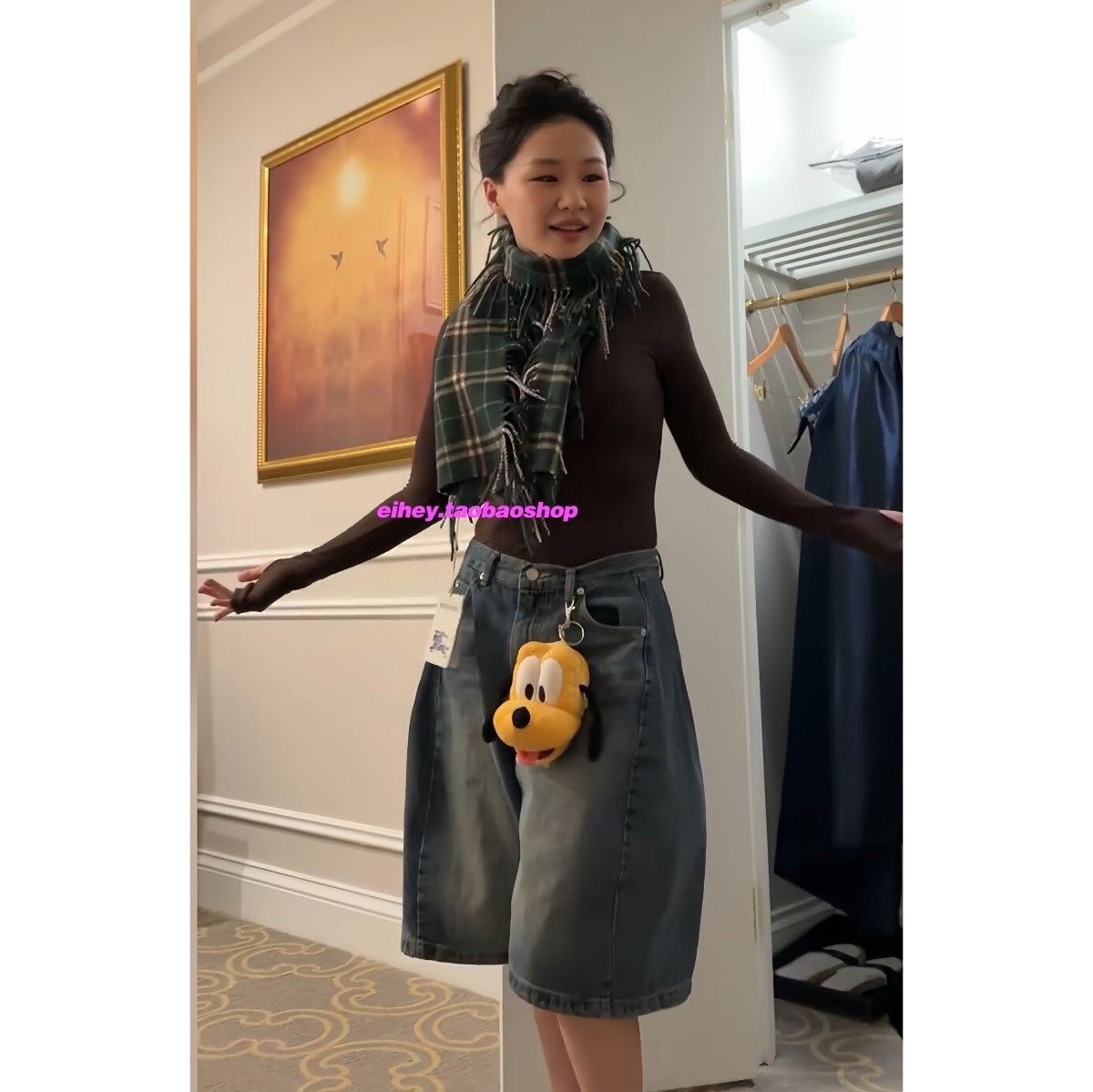 📚 eihey诶嘿26夏季金靖同款宽松阔腿牛仔裤美式复古五分中裤短裤女