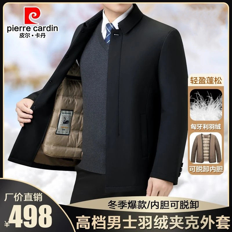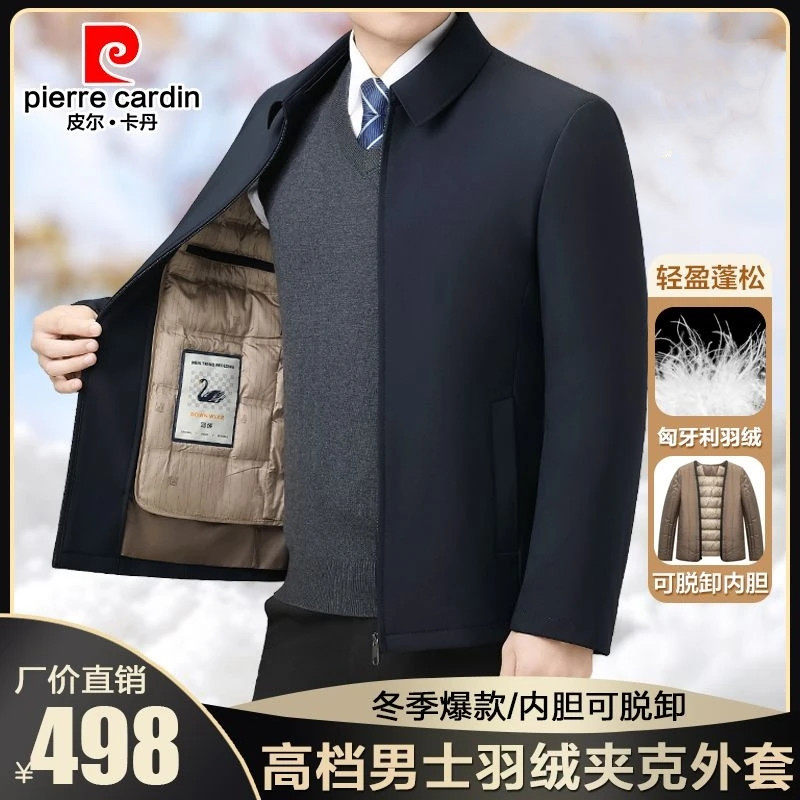 📚 皮尔卡丹大码男装白鸭绒羽绒服冬季可拆卸内胆行政翻领夹克外套男
